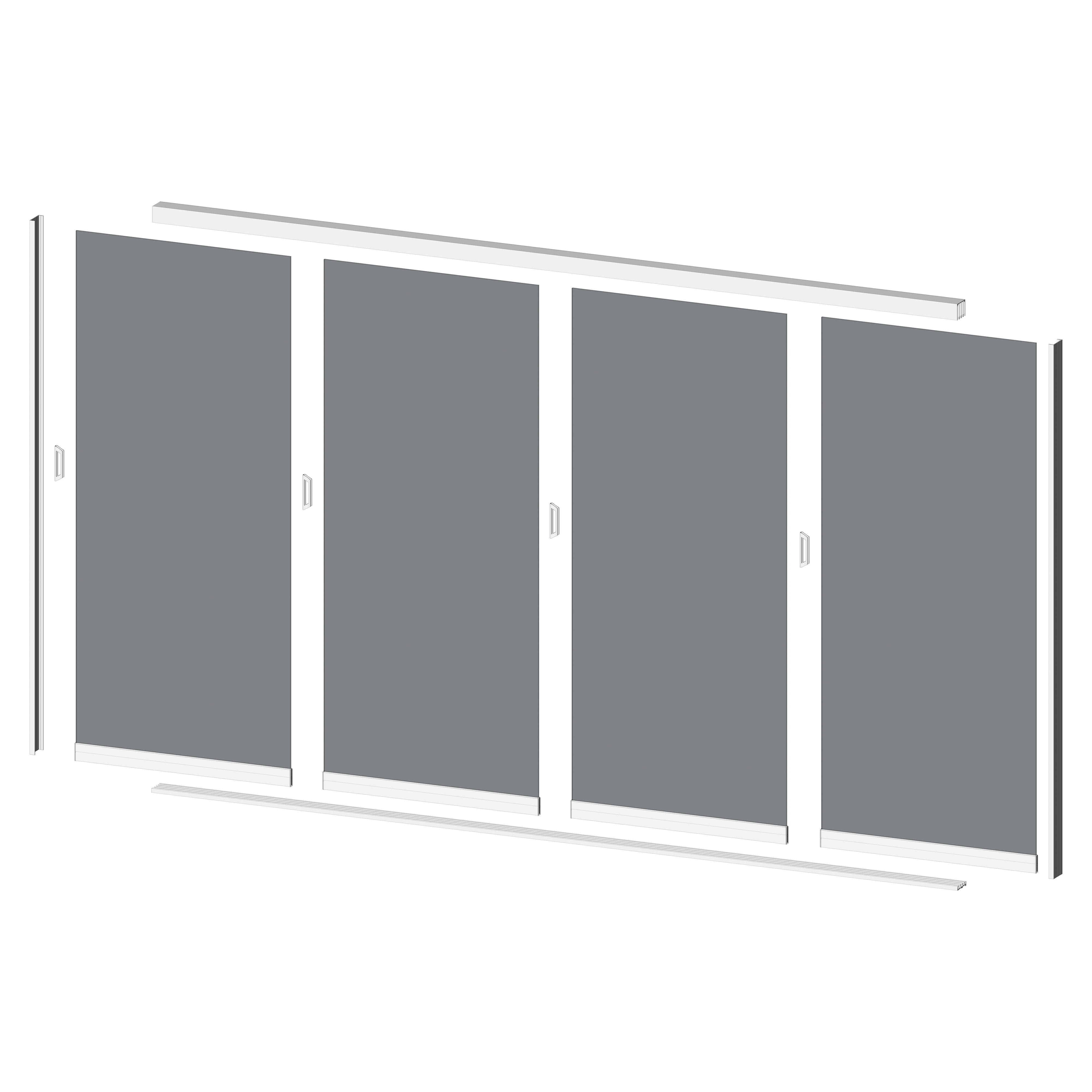 Die Dreamgarden Glasschiebewände können zusätzlich mit Unterbau-Tragprofil, Zugluftstopper und Türmitnehmer ausgestattet werden (nicht im Lieferumfang).