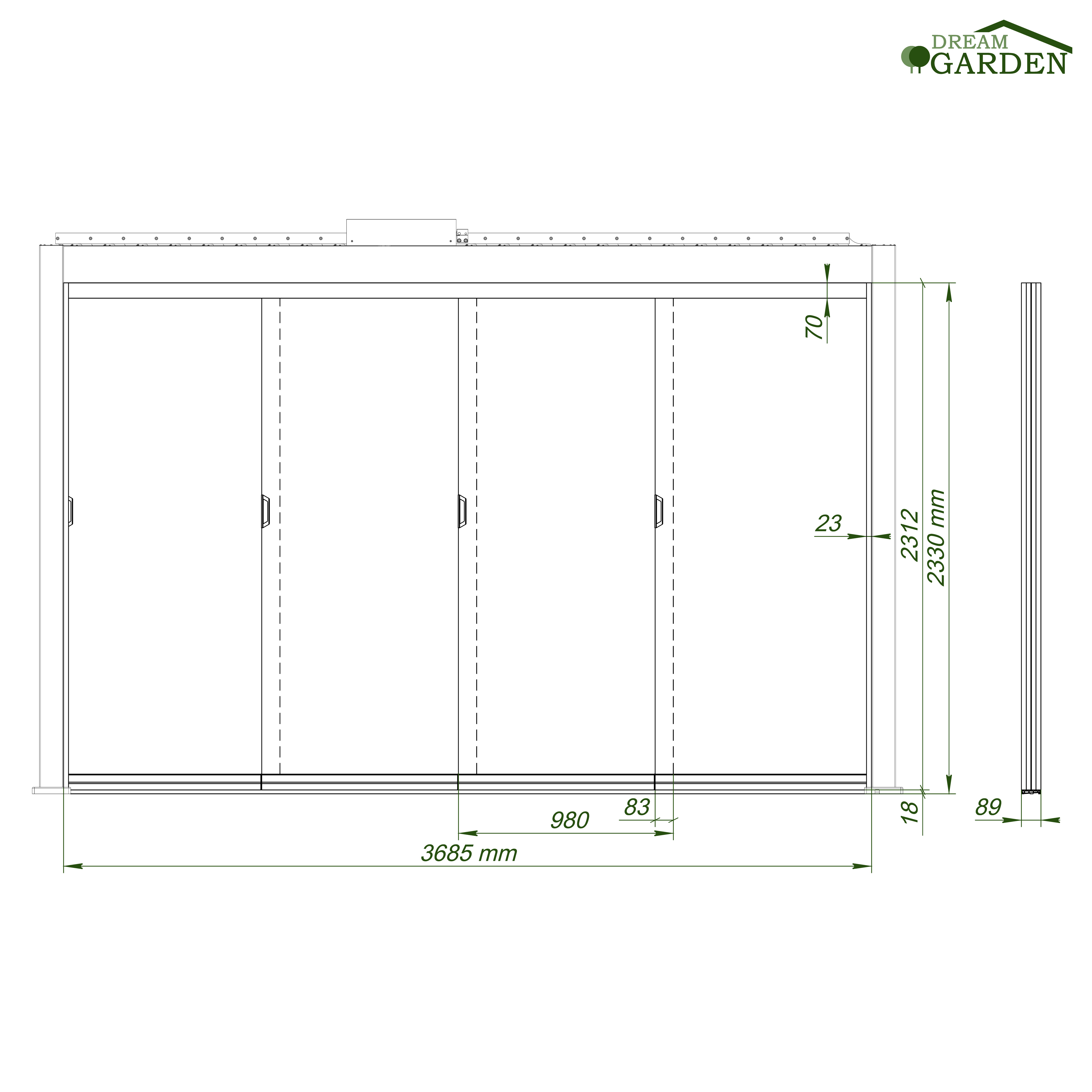 Dreamgarden Glasschiebewand Weiß für 4 Meter Pergola Florenz - Glas Grau