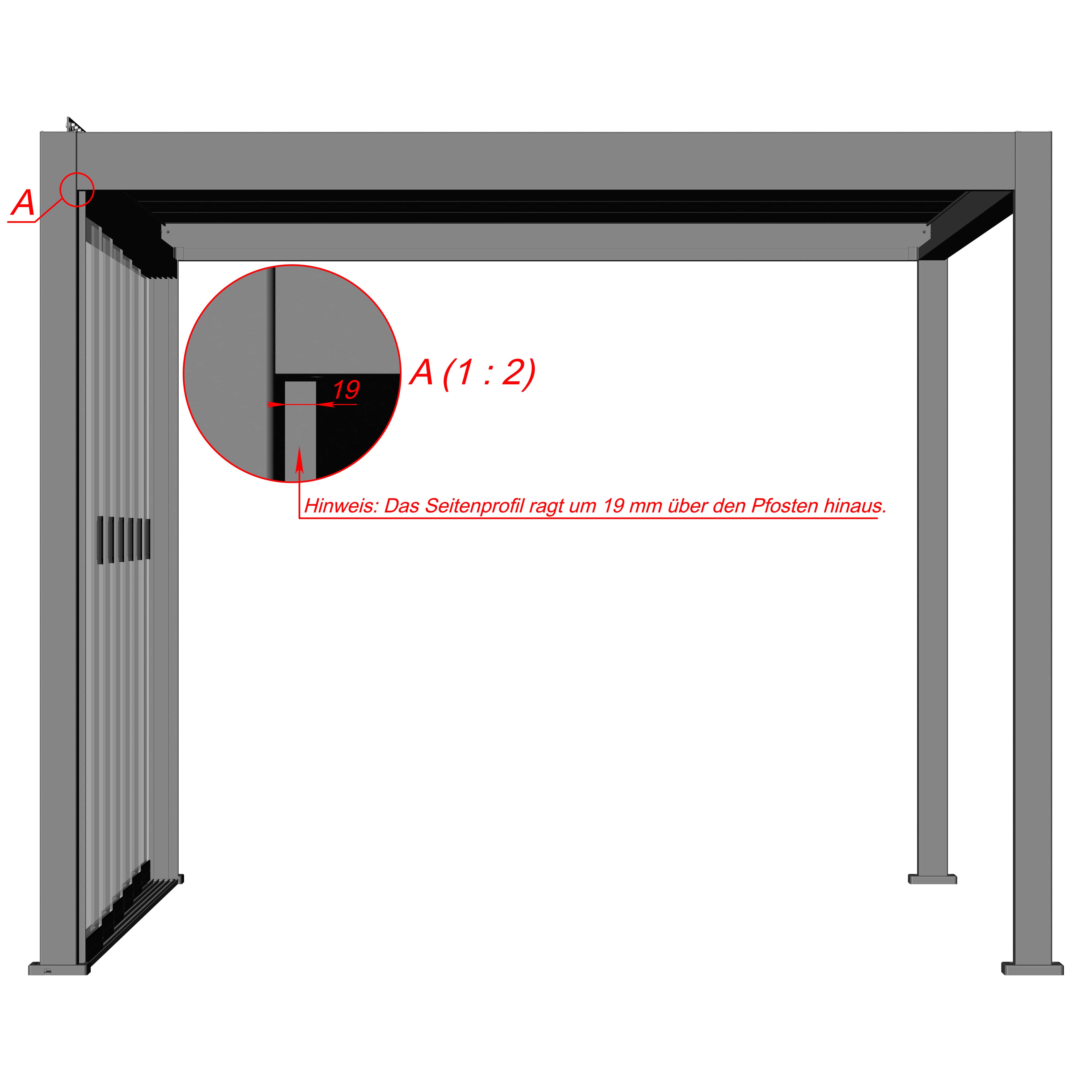 Die Anzahl der enthaltenen Elemente richtet sich nach der gewählten Größe. Je nach örtlichen Gegebenheiten können Anpassungen an den Profilen erforderlich sein – diese sind problemlos umsetzbar.