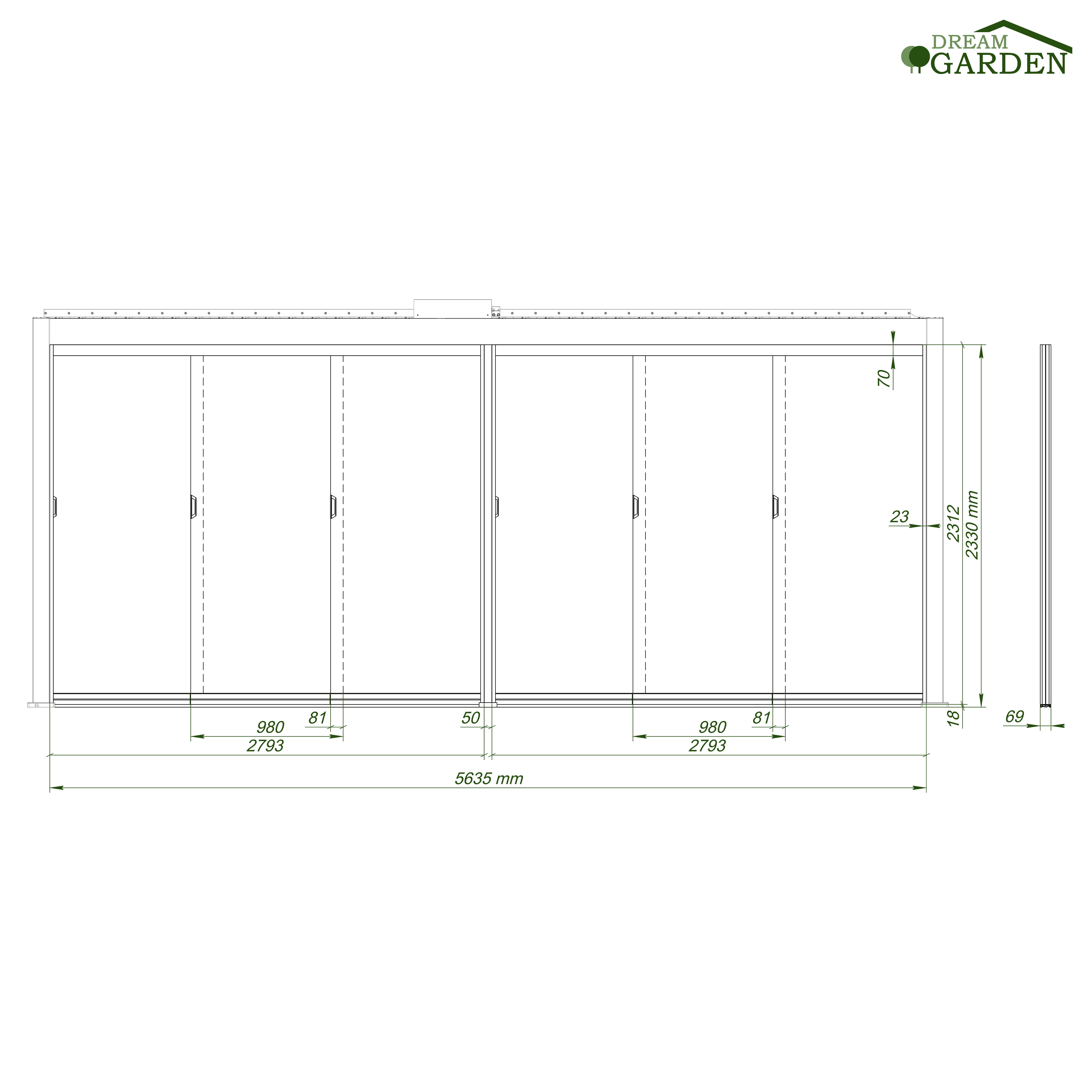 Maße Gesamtelement (L x H x B): 2900 x 2350 x 69,27 mm