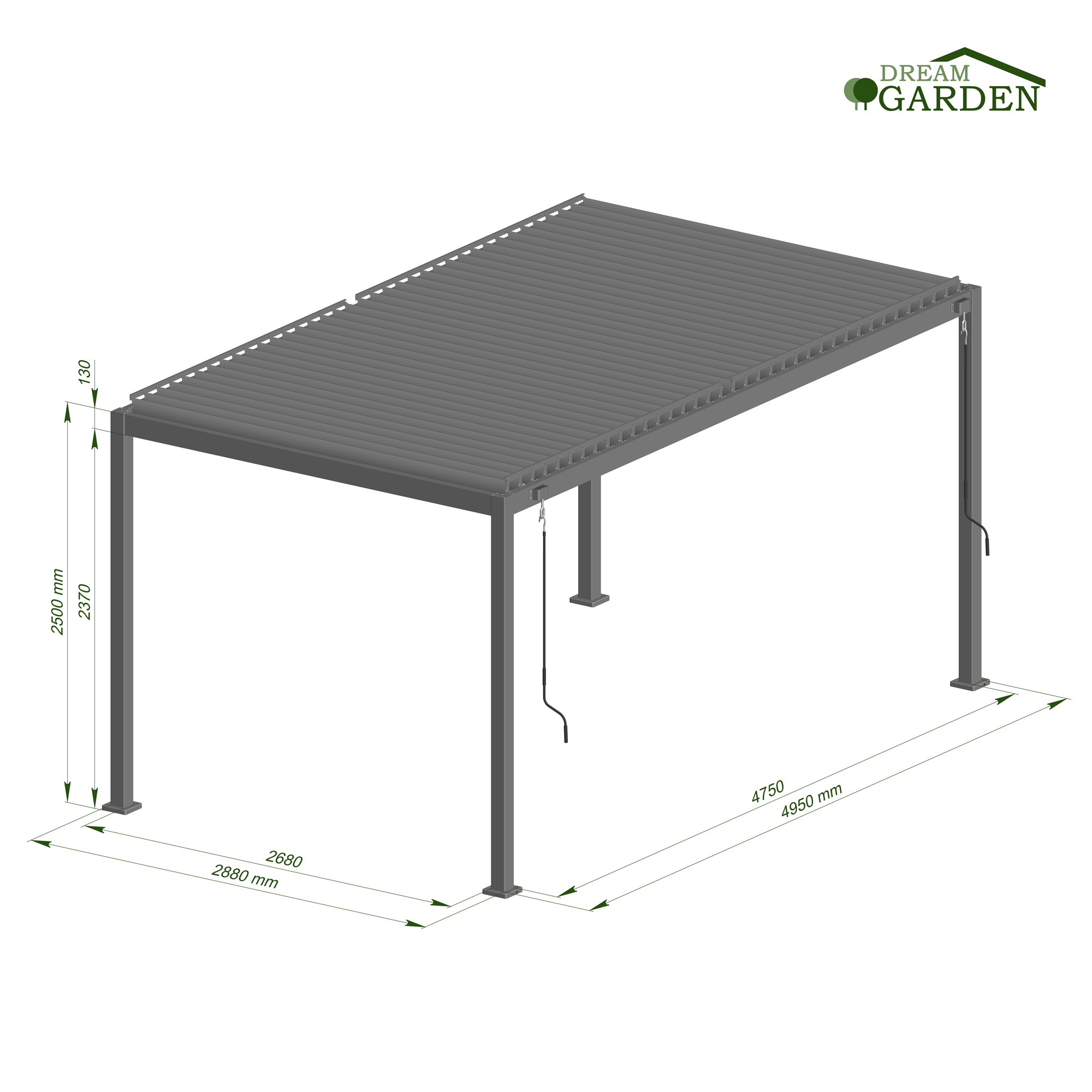 Maße Pergola (LxBxH): 2880x4950x2500 mm