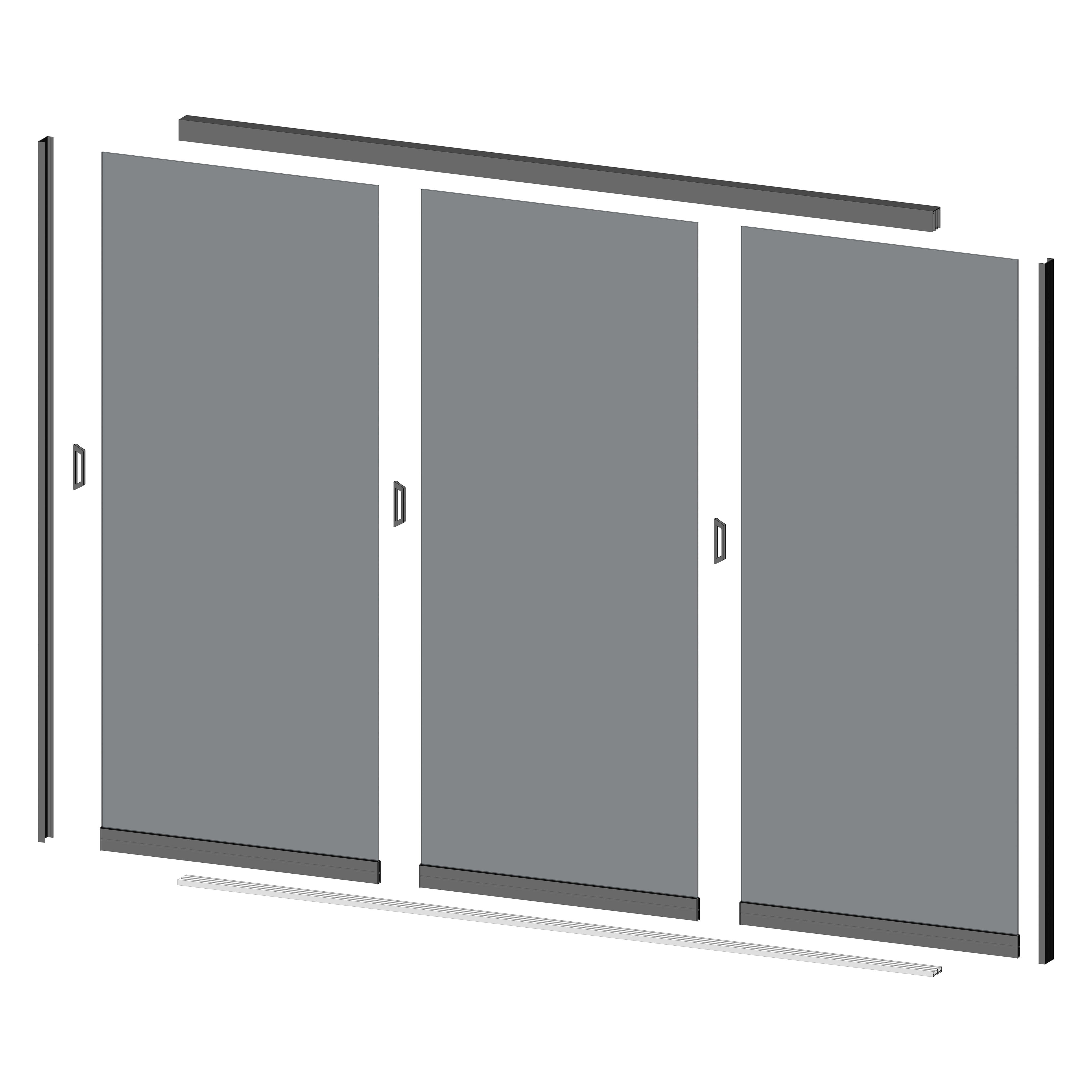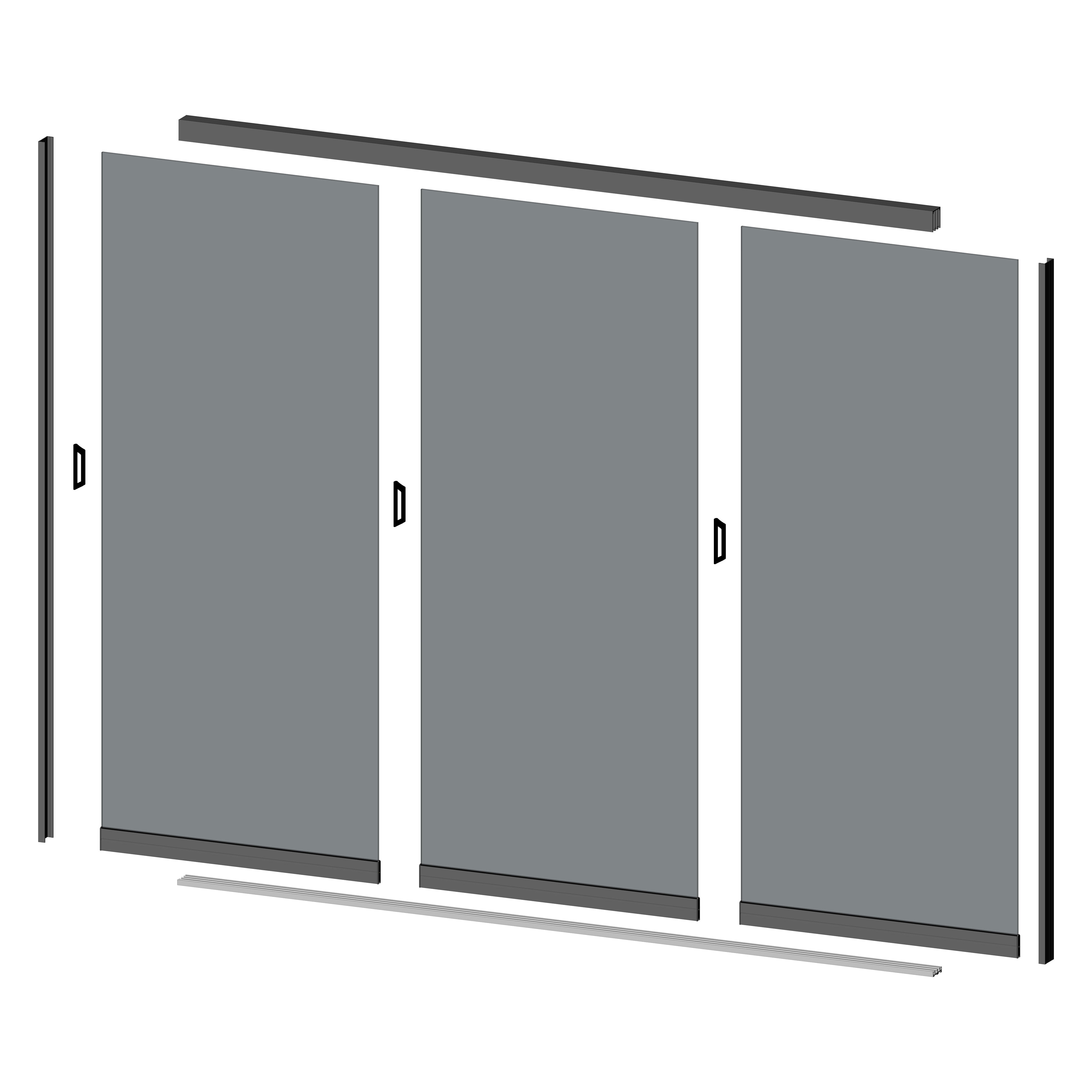 1x Glasschiebewand 2,9 x 2,4 Meter 3-türig Glas Grau Anthrazit