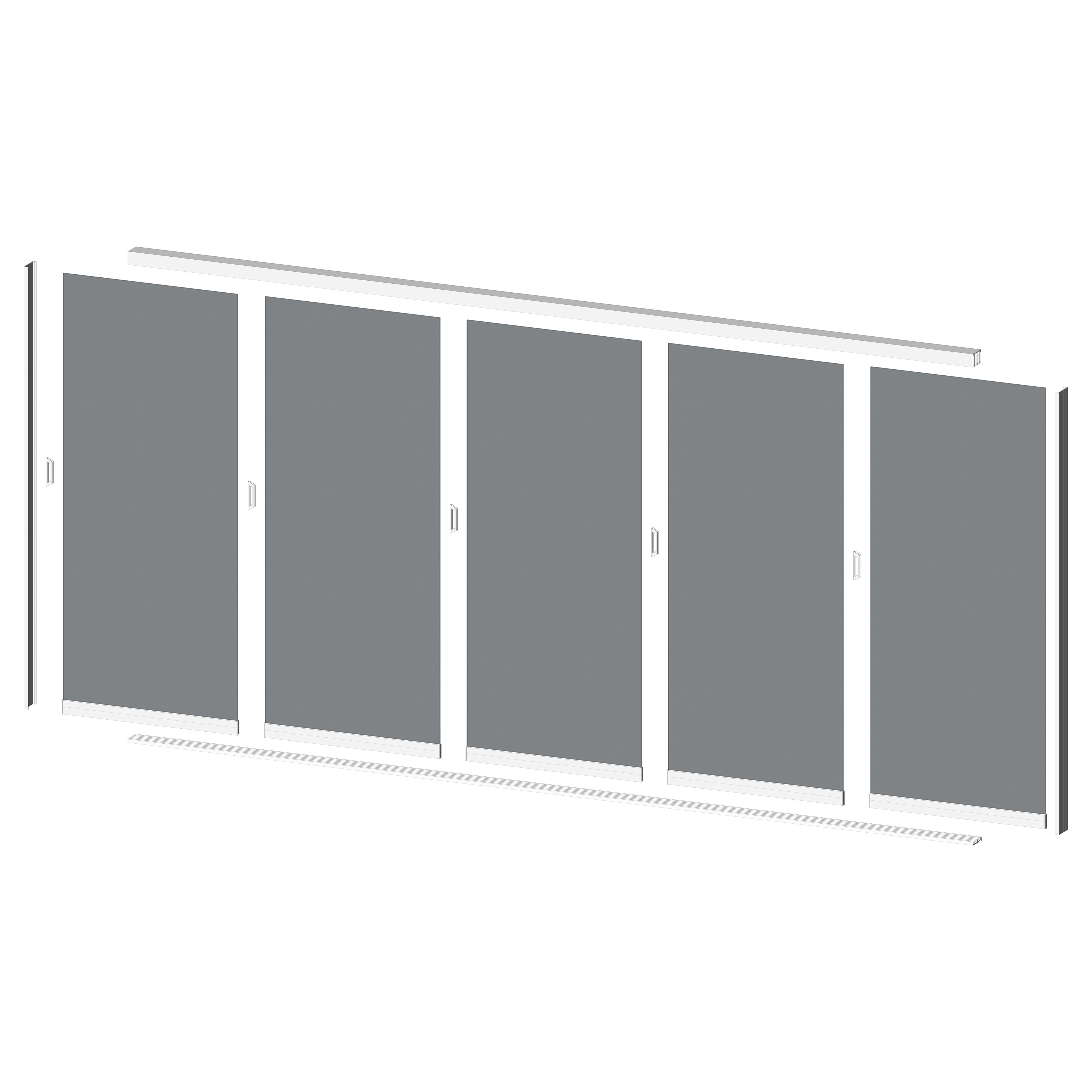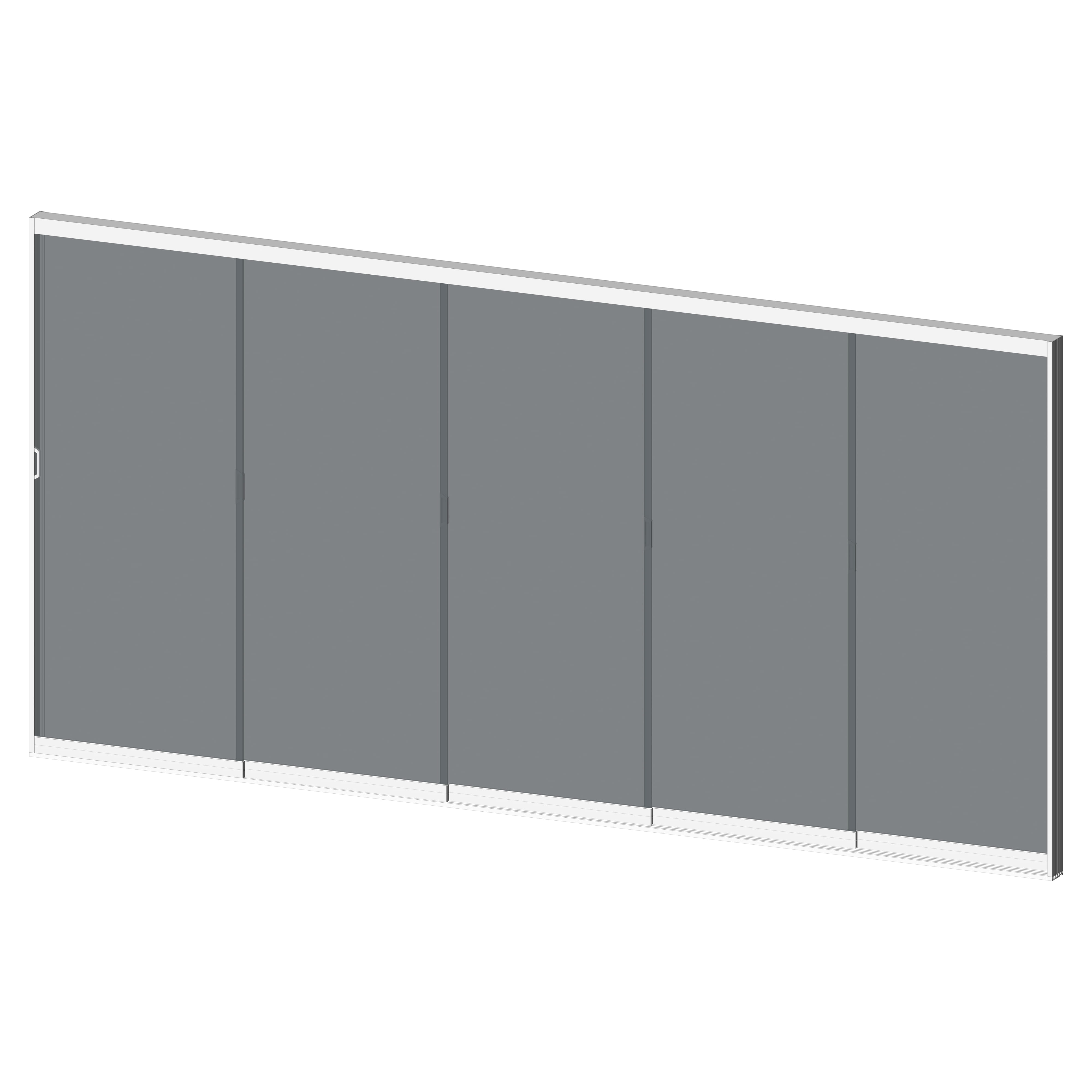 1x Glasschiebewand 4,9 x 2,4 Meter 5-türig Glas Grau Weiß