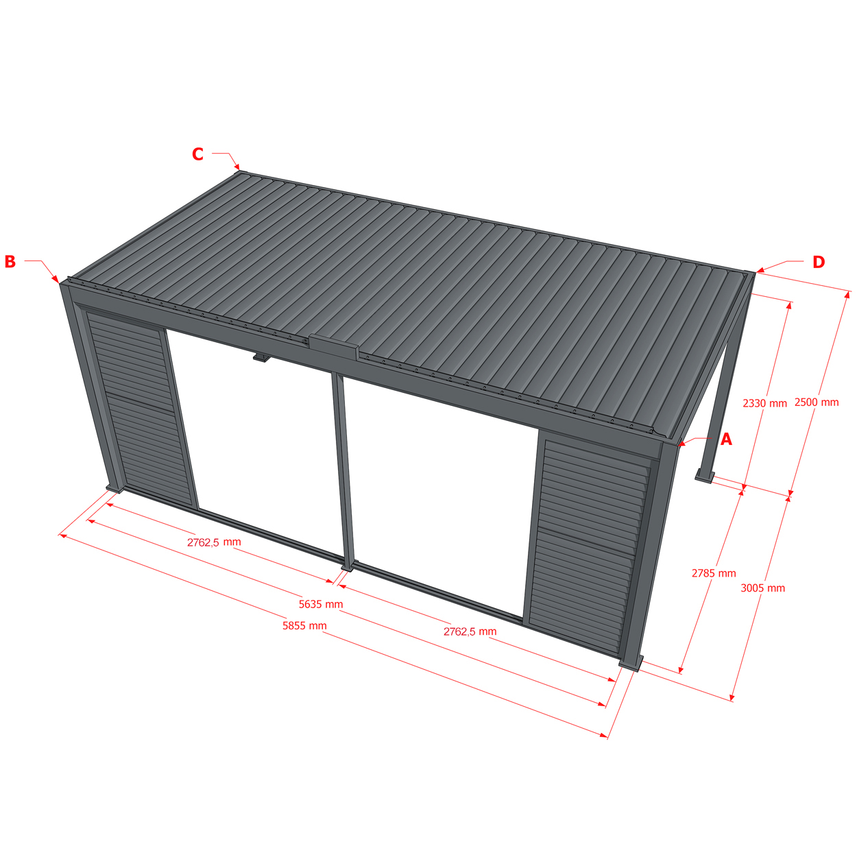 Wandlamellen sind im Rahmen an allen Seiten der Pergola montierbar und bieten optimalen Schutz gegen Wind, Regen, Sonne und andere äußere Einflüsse.