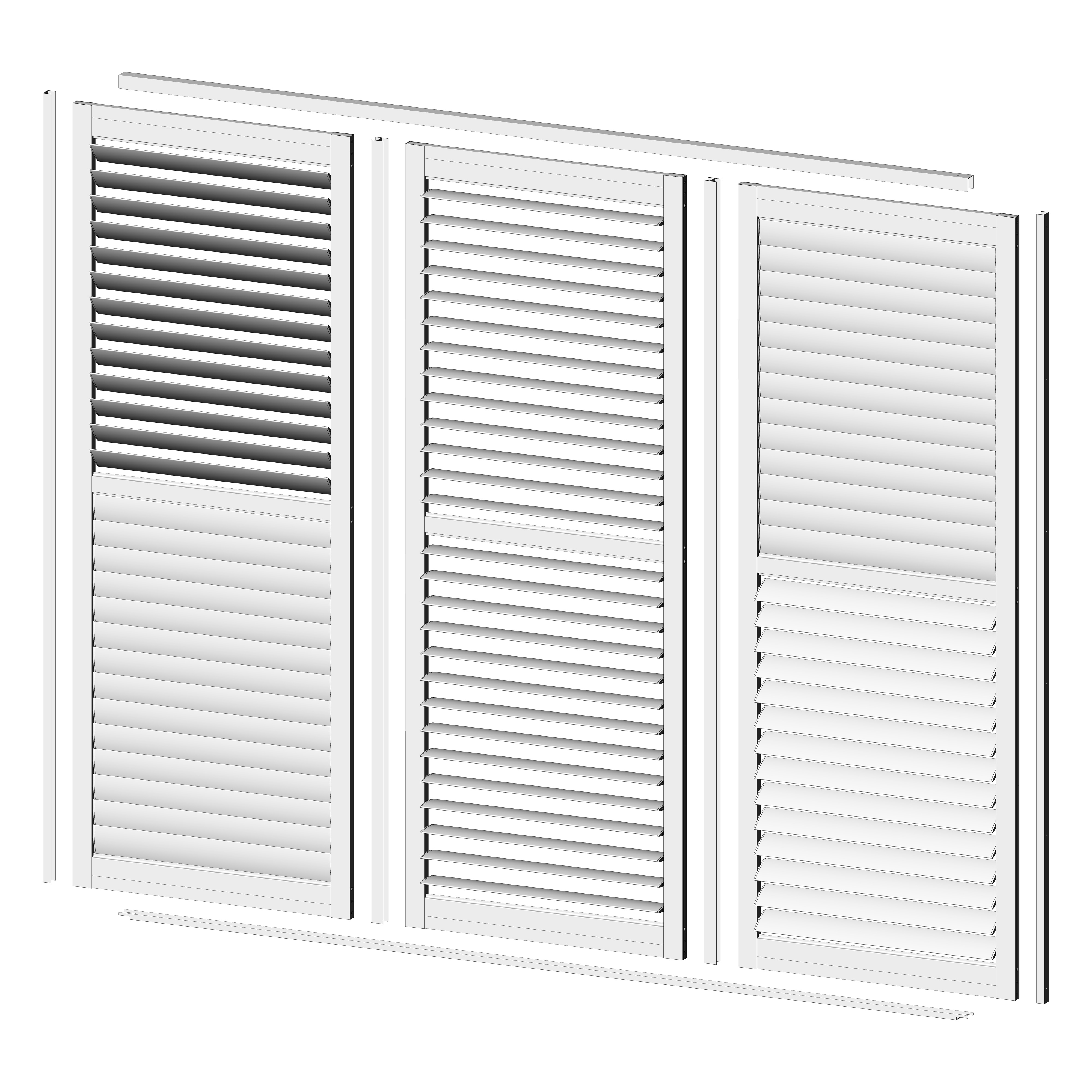 Festes Lamellenelement mit komplett integrierter Einbauweise als fertiger Bausatz.