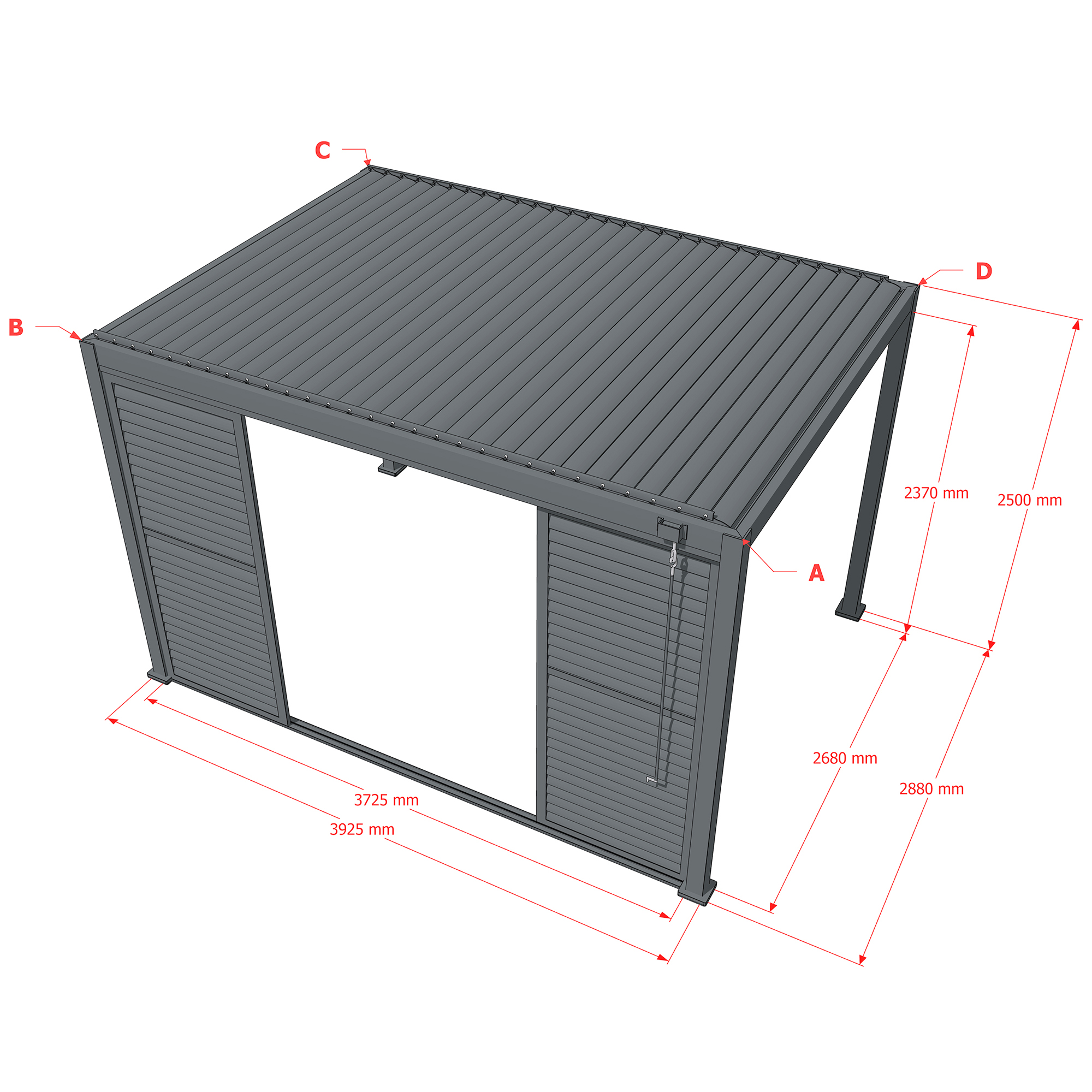 Sichtschutz Wandlamellen sind im Rahmen an allen Seiten der Pergola montierbar und bieten optimalen Schutz gegen Wind, Regen, Sonne und andere äußere Einflüsse.
