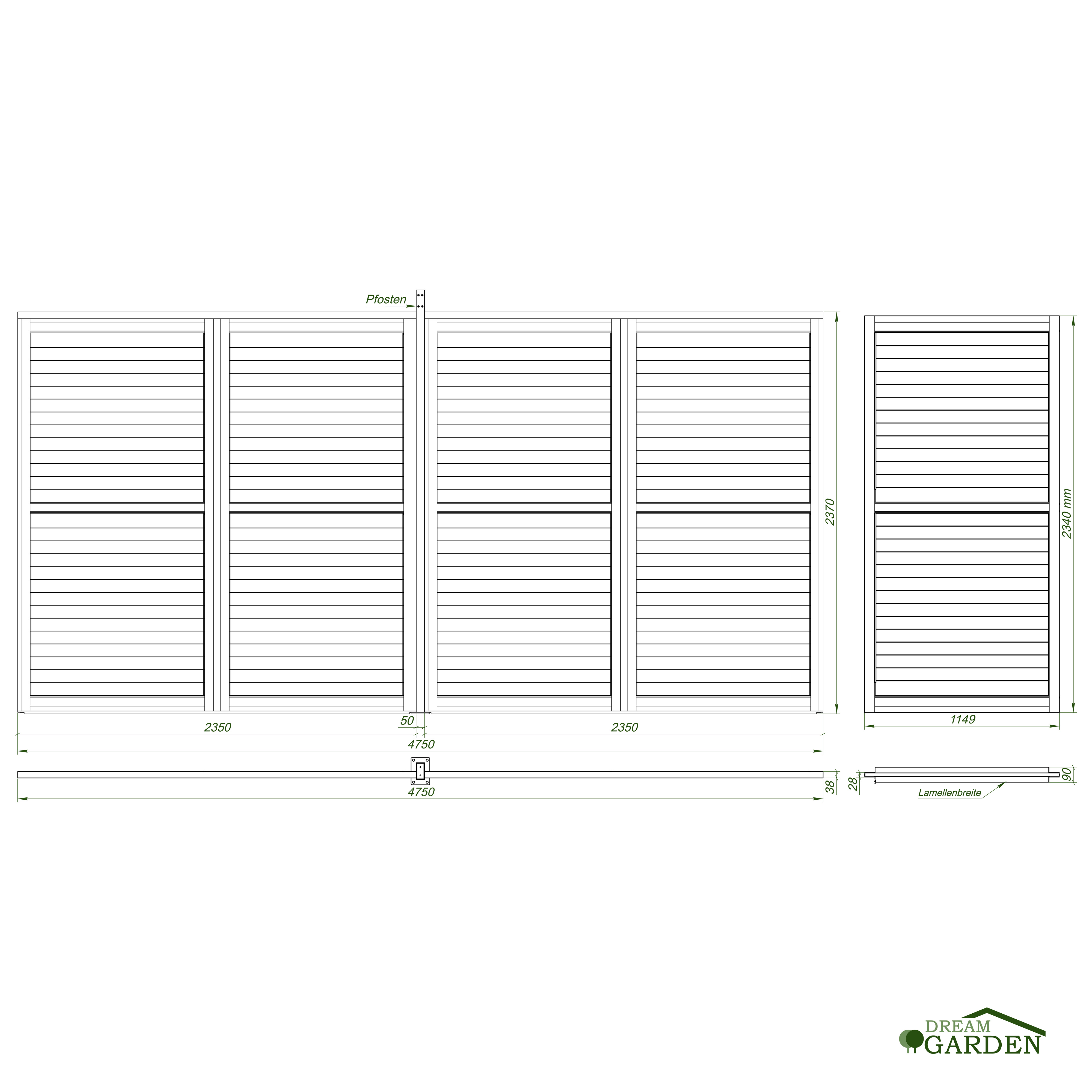 Maße (BxH): 2350x2370 mm (2 Stück inkl. Zwischenpfosten)
