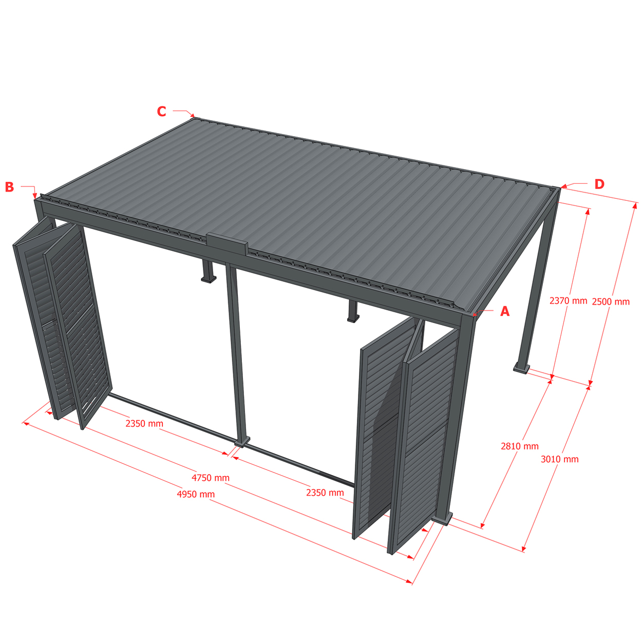 Dreamgarden Pergola Lamellenwand Tropea 5 m Faltwand Anthrazit Sichtschutz