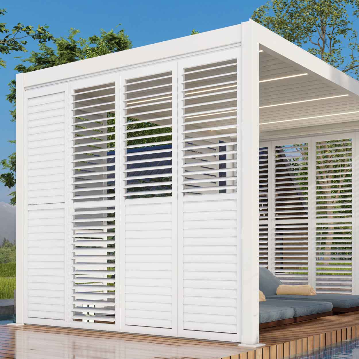 Wandlamellen sind im Rahmen an allen Seiten der Pergola montierbar und bieten optimalen Schutz gegen Wind, Regen, Sonne und andere äußere Einflüsse.