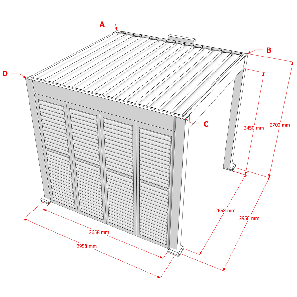 Sichtschutz Wandlamellen sind im Rahmen an allen Seiten der Pergola montierbar und bieten optimalen Schutz gegen Wind, Regen, Sonne und andere äußere Einflüsse.