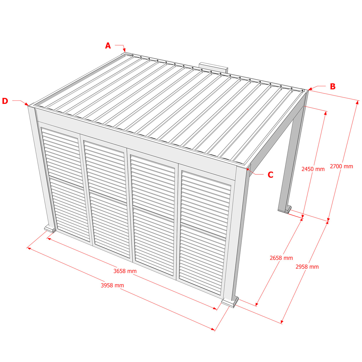 Sichtschutz Wandlamellen sind im Rahmen an allen Seiten der Pergola montierbar und bieten optimalen Schutz gegen Wind, Regen, Sonne und andere äußere Einflüsse.