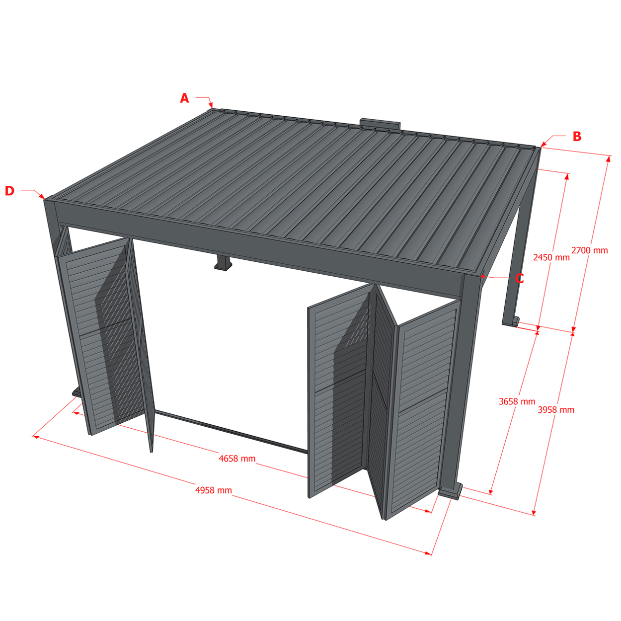 Dreamgarden Pergola Lamellenwand Verona 5 m Faltwand Anthrazit Sichtschutz
