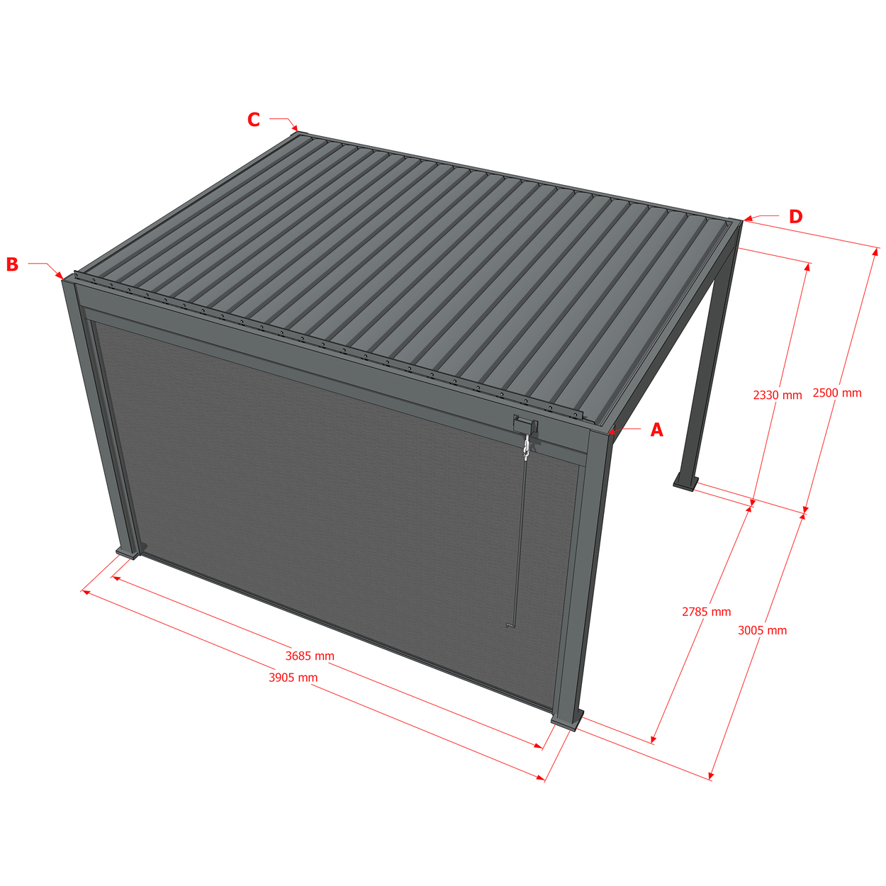 Seitenrollo ist im Rahmen an allen vier Seiten der Pergola montierbar und bietet optimalen Schutz gegen Wind, Sonne und andere äußere Einflüsse.