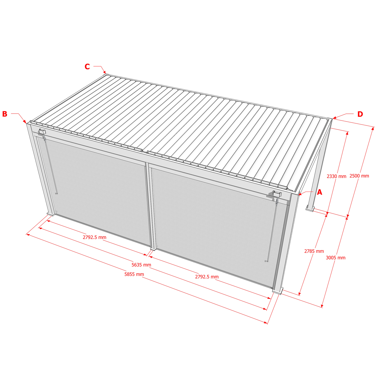 Maße (BxH): 2792,5x2330 mm (2 Stück inkl. Zwischenpfosten)
