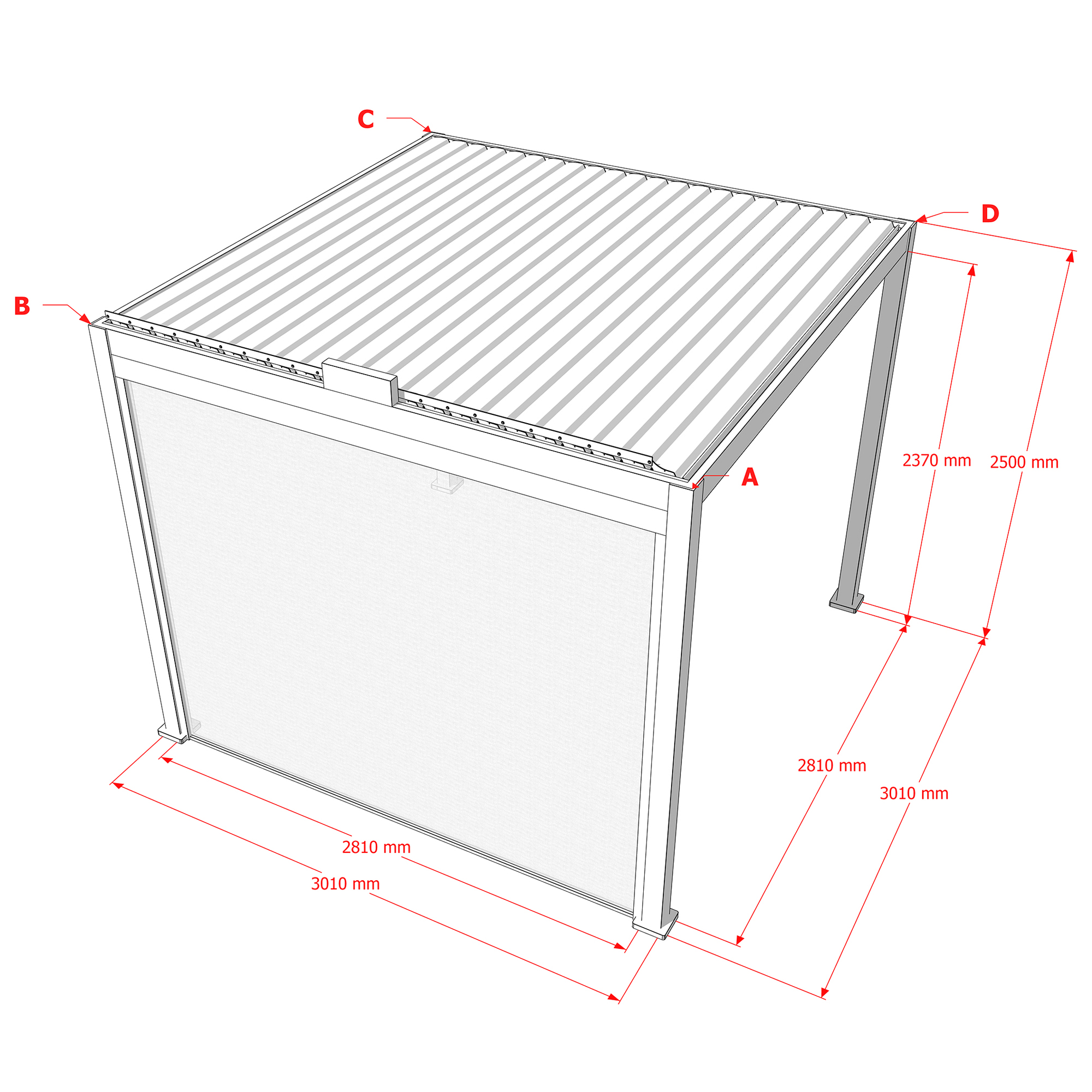 Seitenrollo ist höhenverstellbare Sonnen- und Sichtschutzblende, die im Rahmen an allen vier Seiten der Pergola montiert werden kann, bietet optimalen Schutz gegen Wind, Regen und andere äußere Einflüsse.