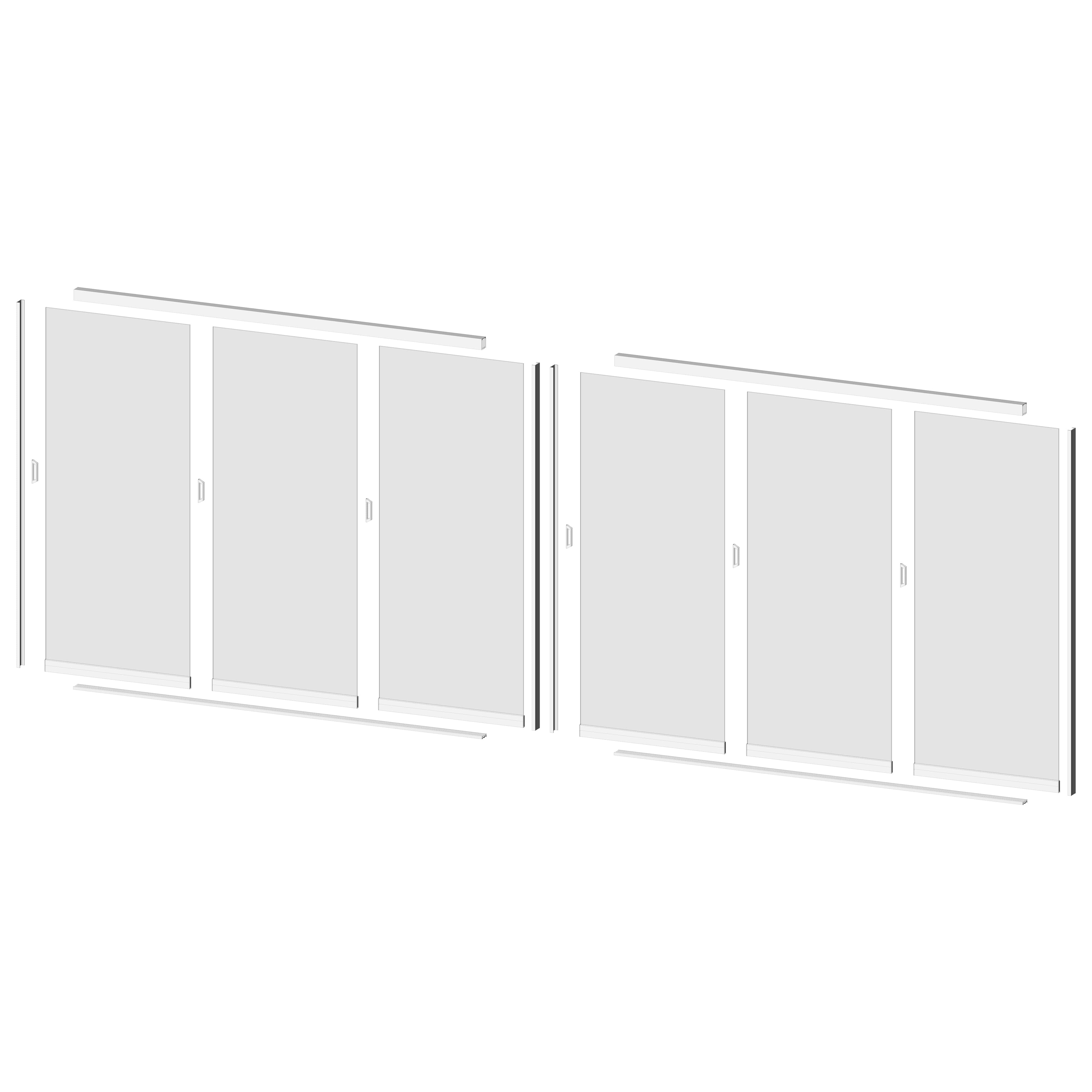2x Glasschiebewand 2,9 x 2,4 Meter 3-türig Glas Klar Weiß