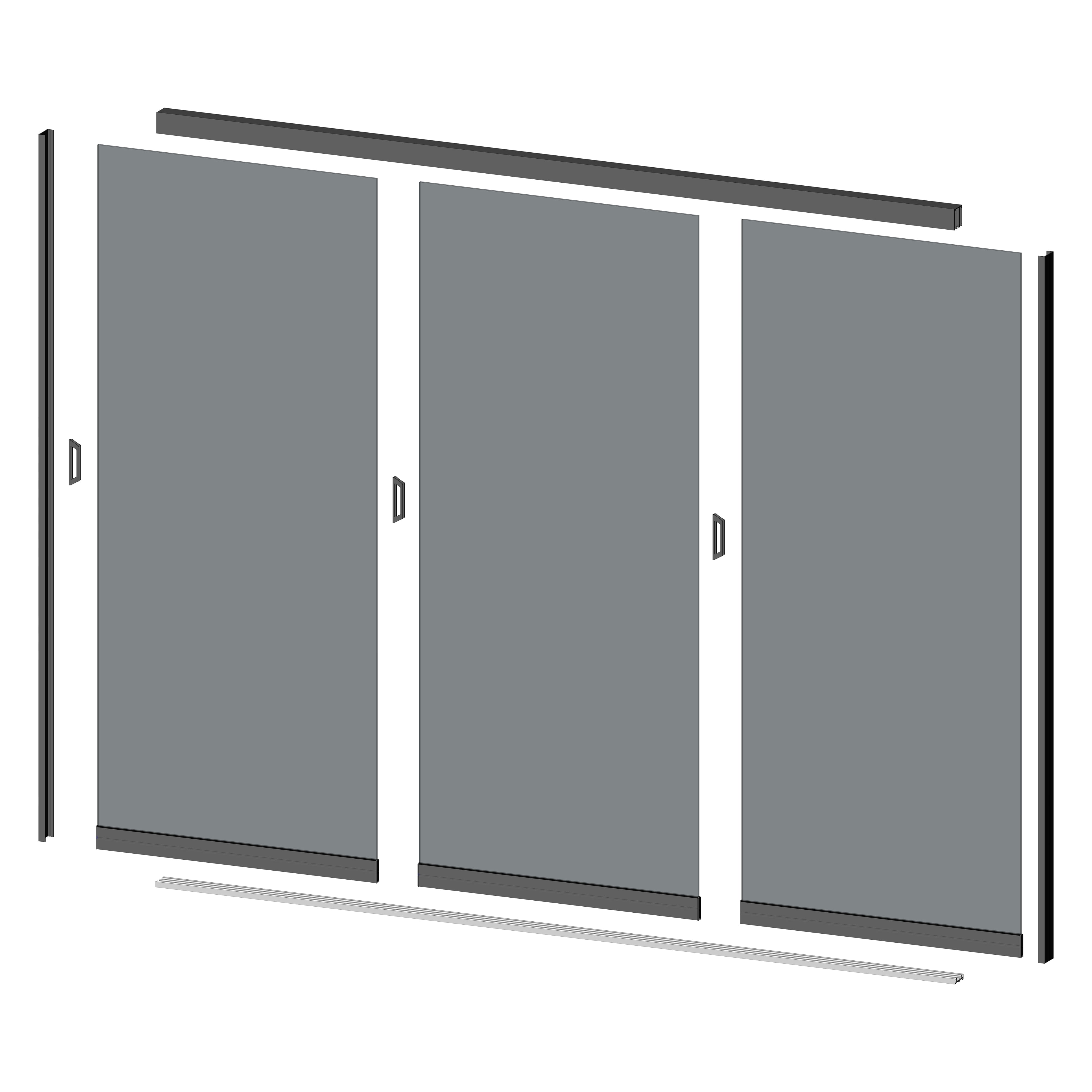 1x Glasschiebewand 2,9 x 2,4 Meter 3-türig Glas Grau Anthrazit