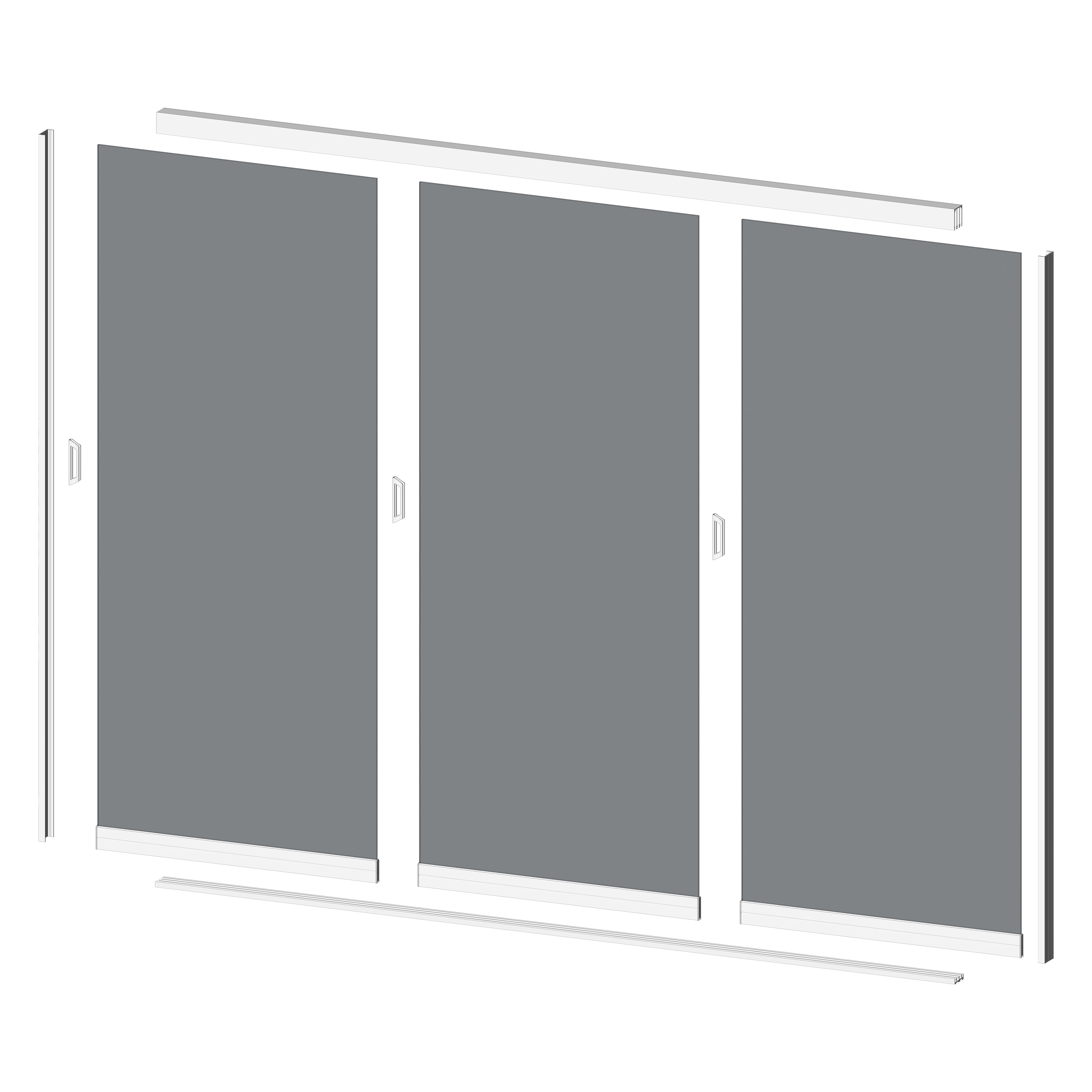 1x Glasschiebewand 2,9 x 2,4 Meter 3-türig Glas Grau Weiß