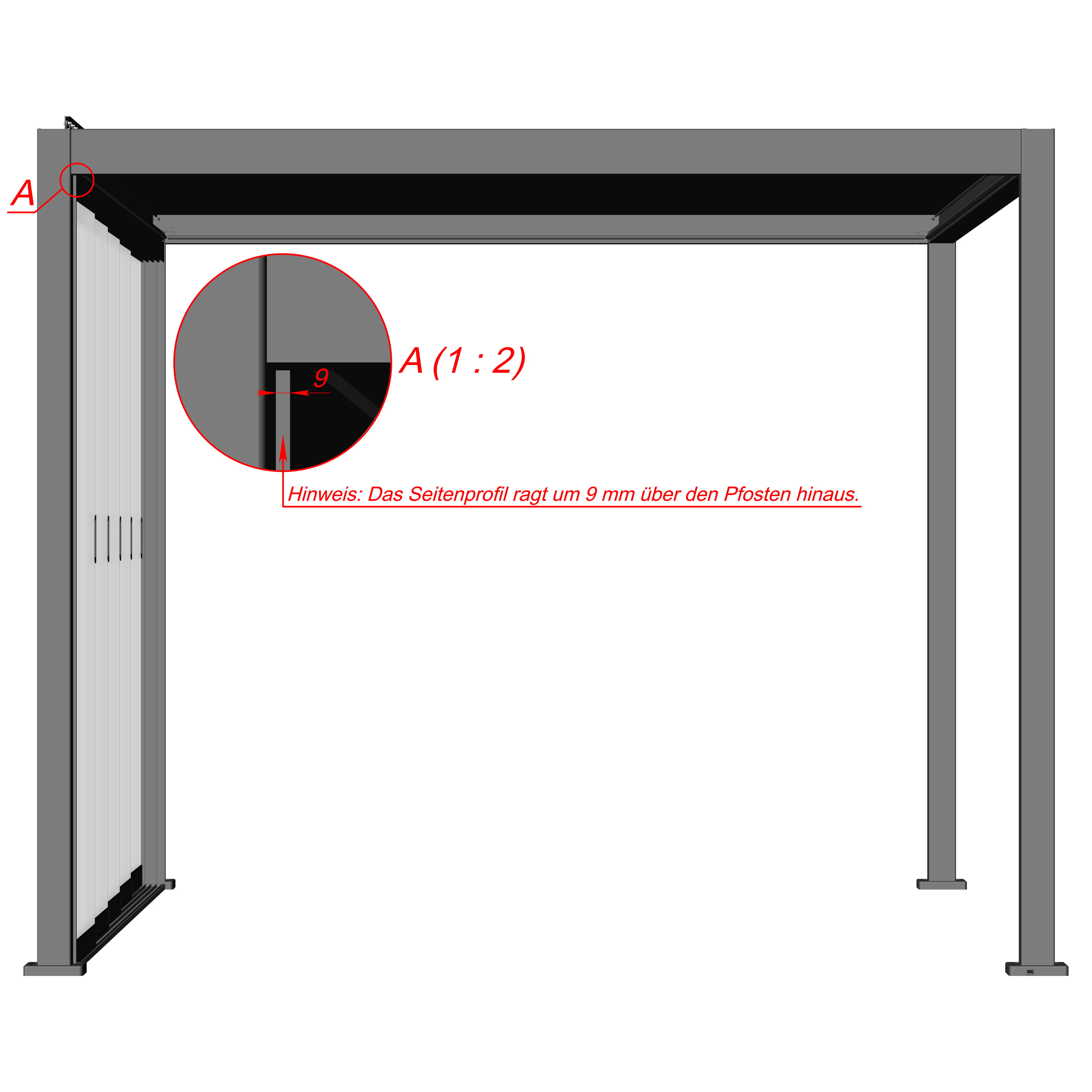Die Anzahl der enthaltenen Elemente richtet sich nach der gewählten Größe. Je nach örtlichen Gegebenheiten können Anpassungen an den Profilen erforderlich sein – diese sind problemlos umsetzbar.