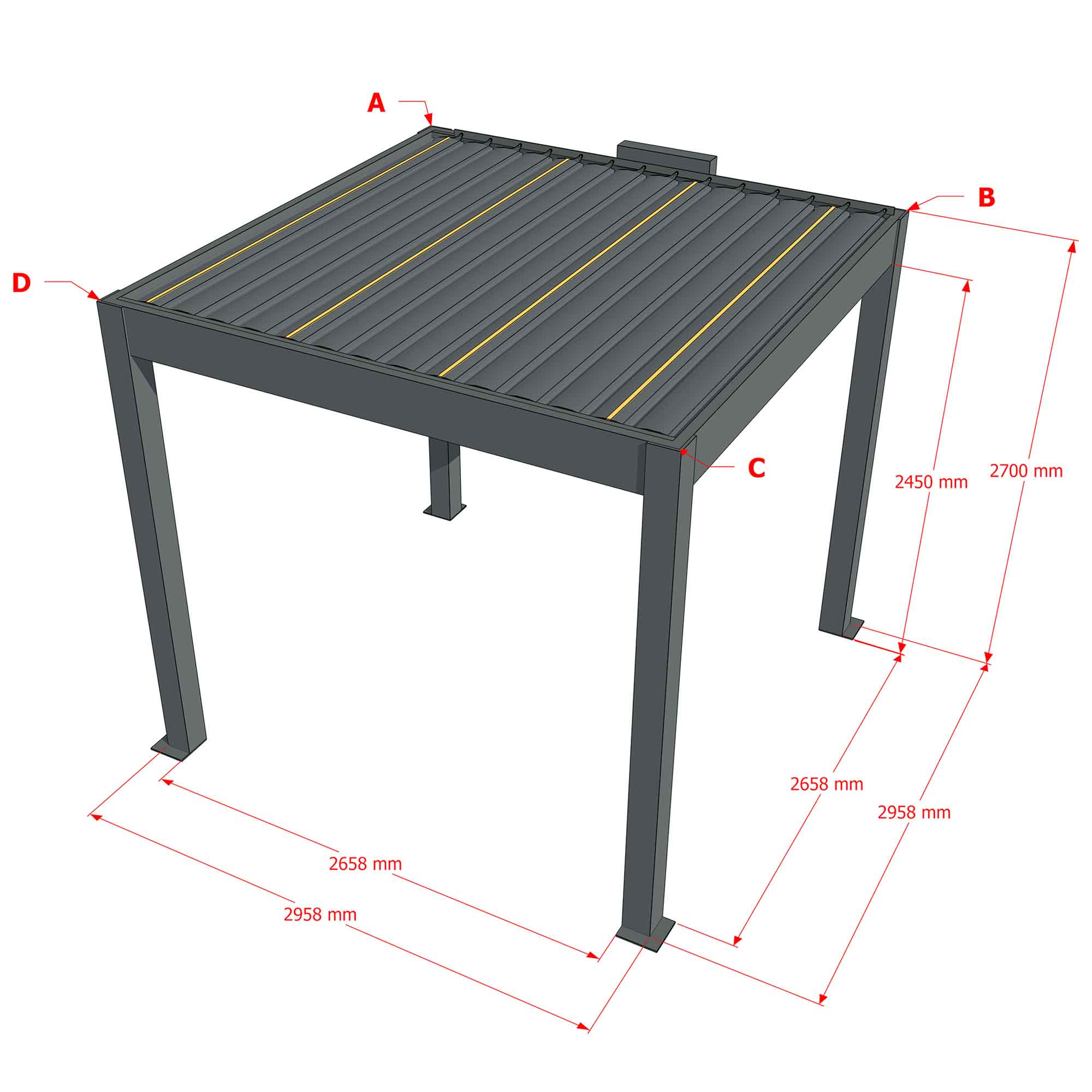 Maße Pergola (LxBxH): 2958x2958x2700 mm