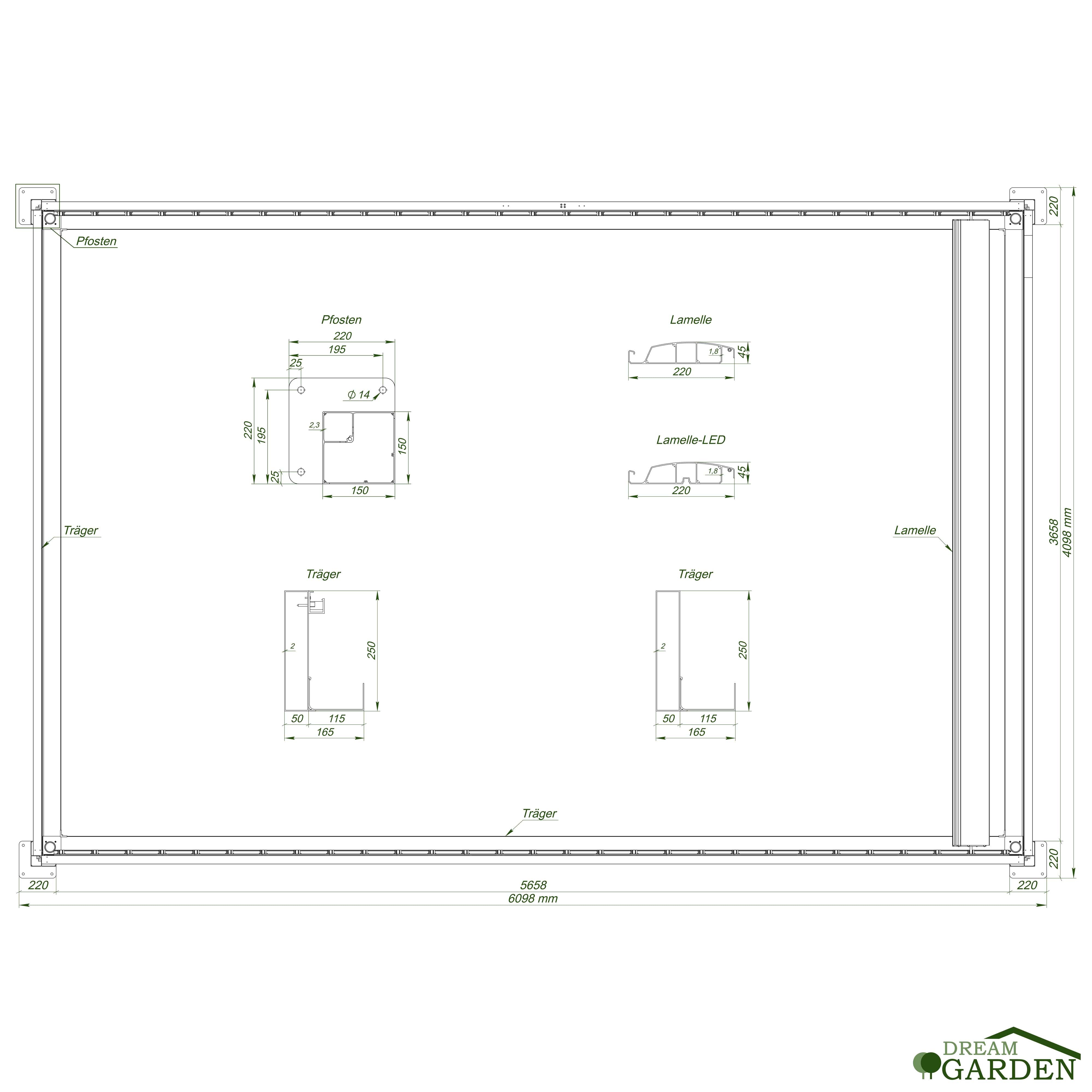 Maße Pergola (LxBxH): 3958x5958x2700 mm
