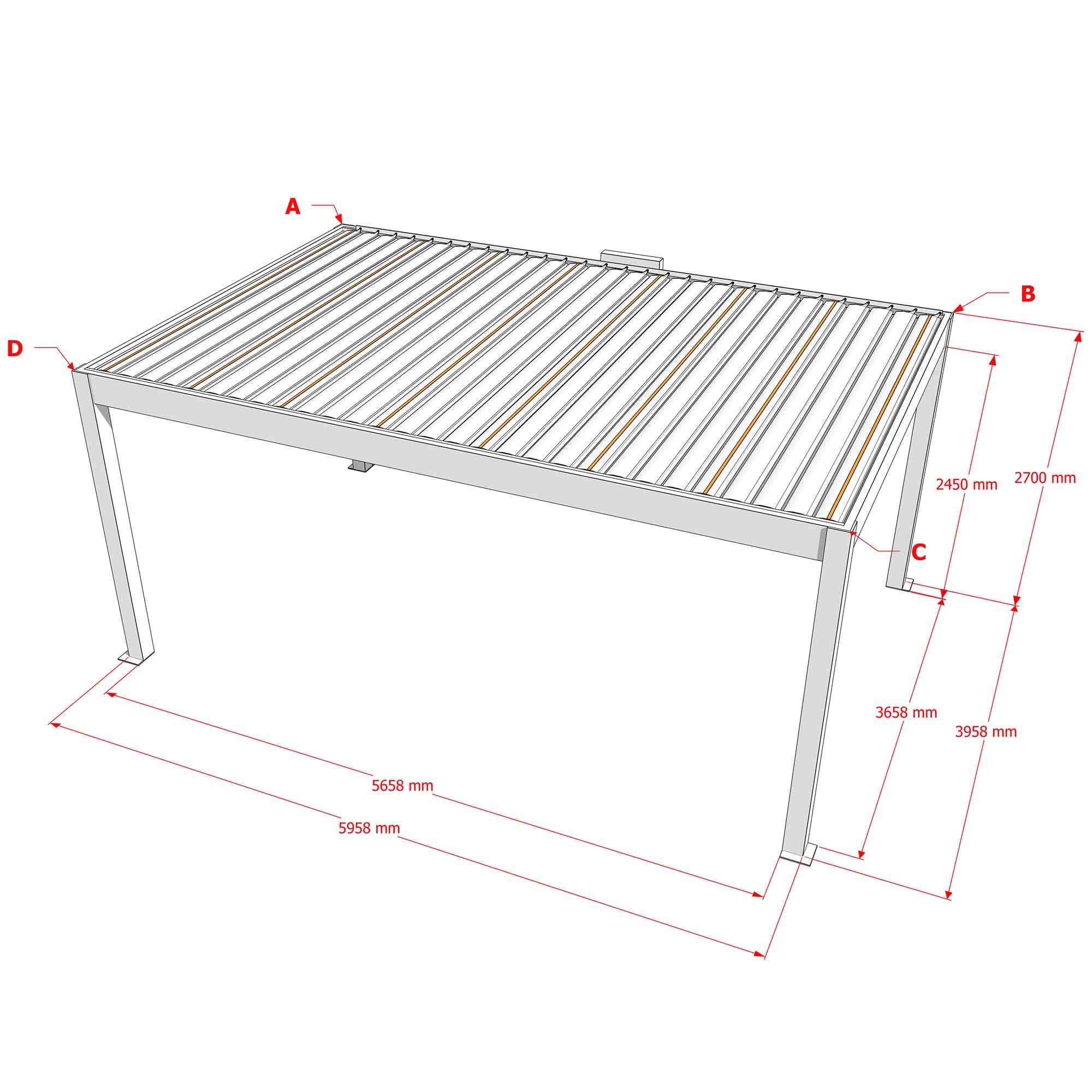 Maße Pergola (LxBxH): 3958x5958x2700 mm