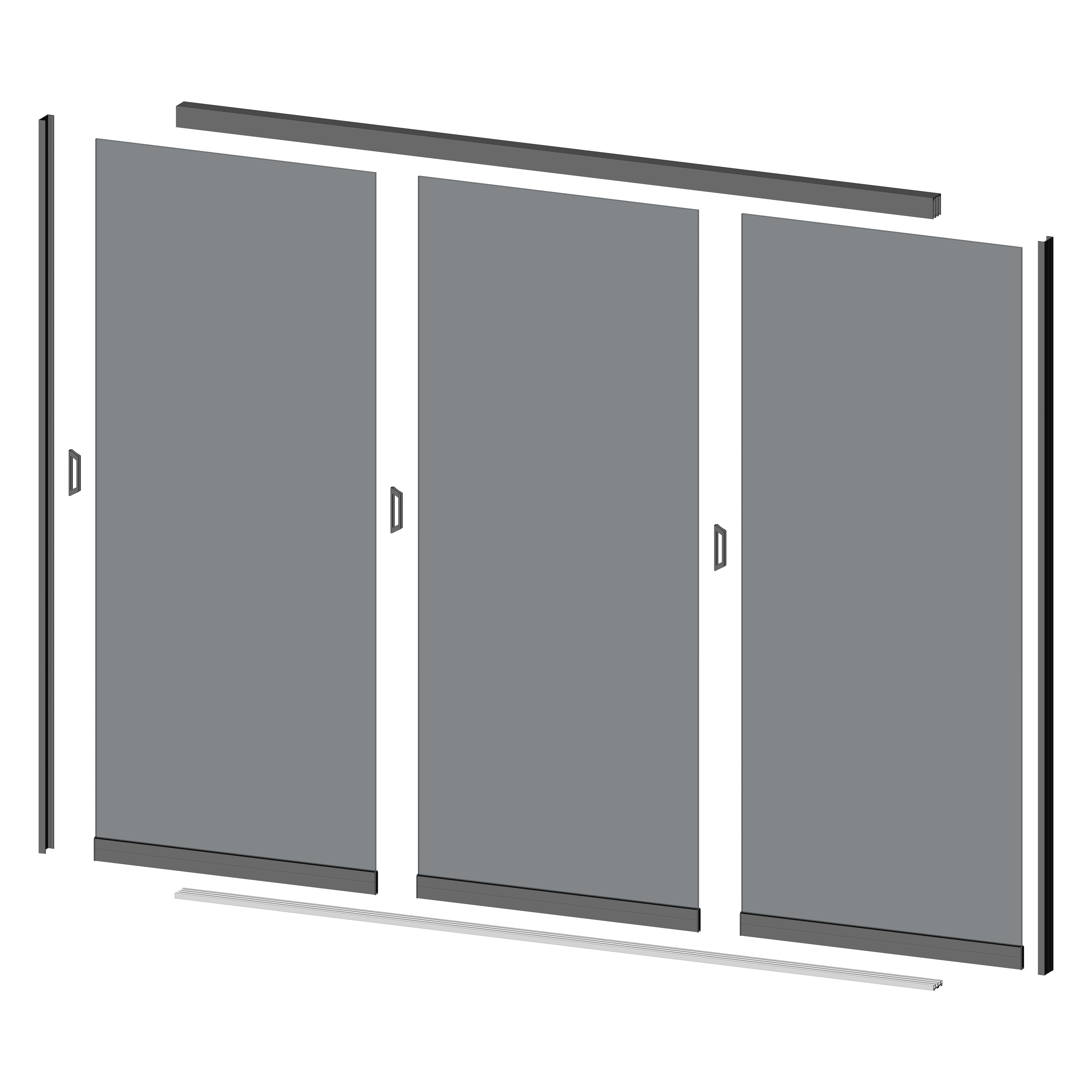 1x Glasschiebewand 2,9 x 2,45 Meter 3-türig Glas Grau Anthrazit