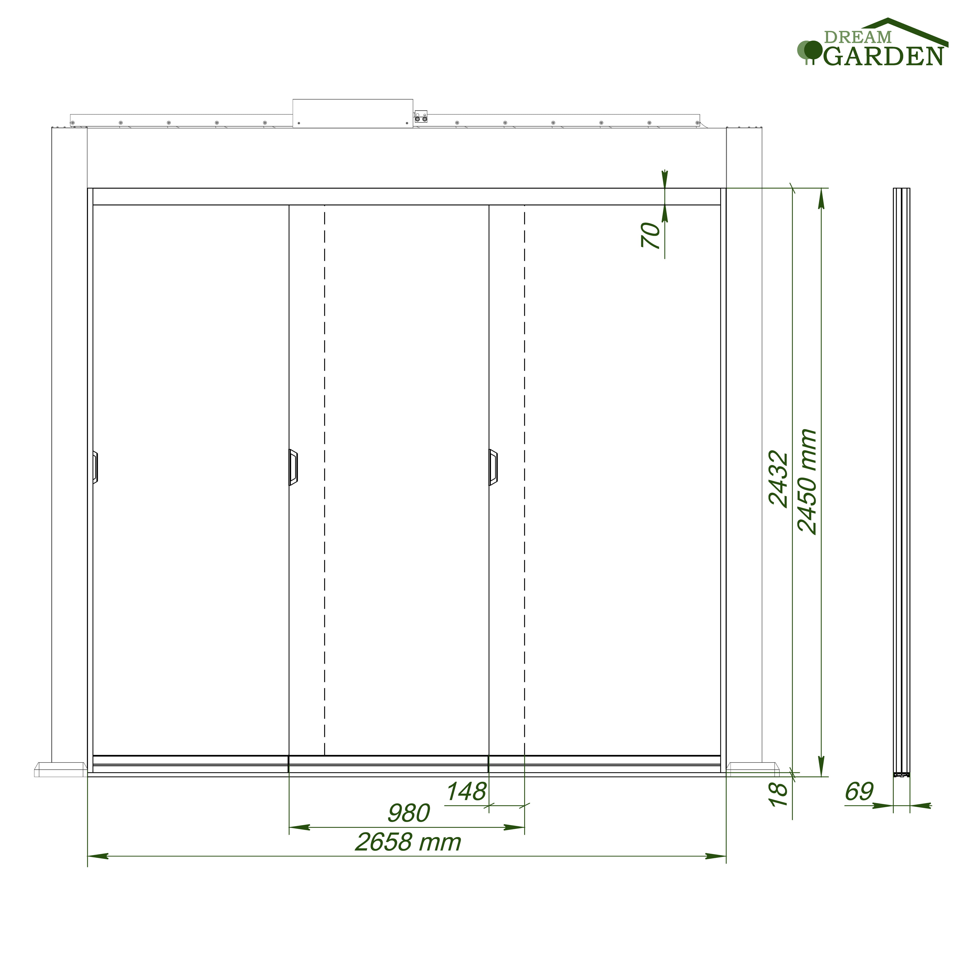 Dreamgarden Glasschiebewand Anthrazit für 3 Meter Pergola Verona - Glas Grau