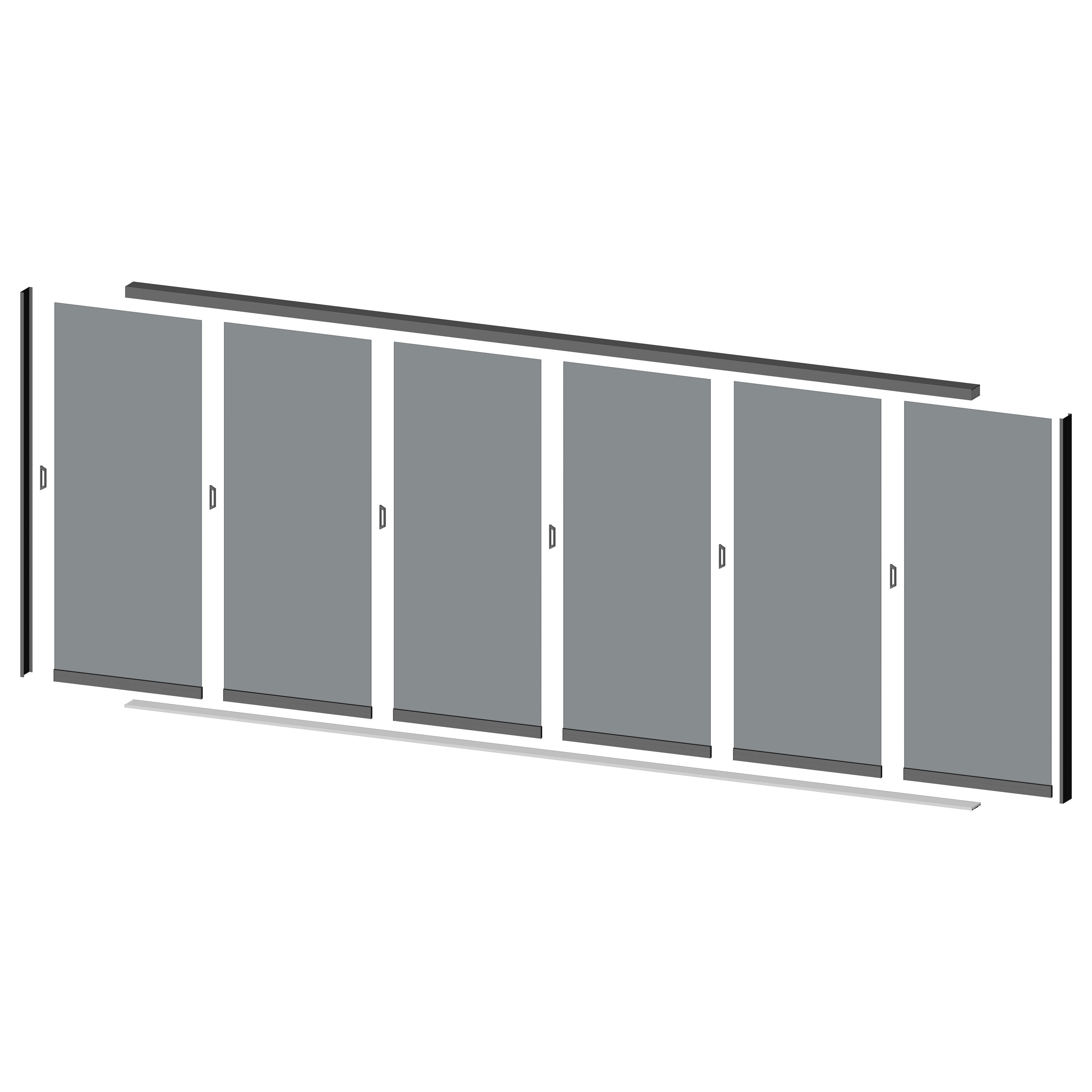 1x Glasschiebewand 5,9 x 2,45 Meter 6-türig Glas Grau Anthrazit