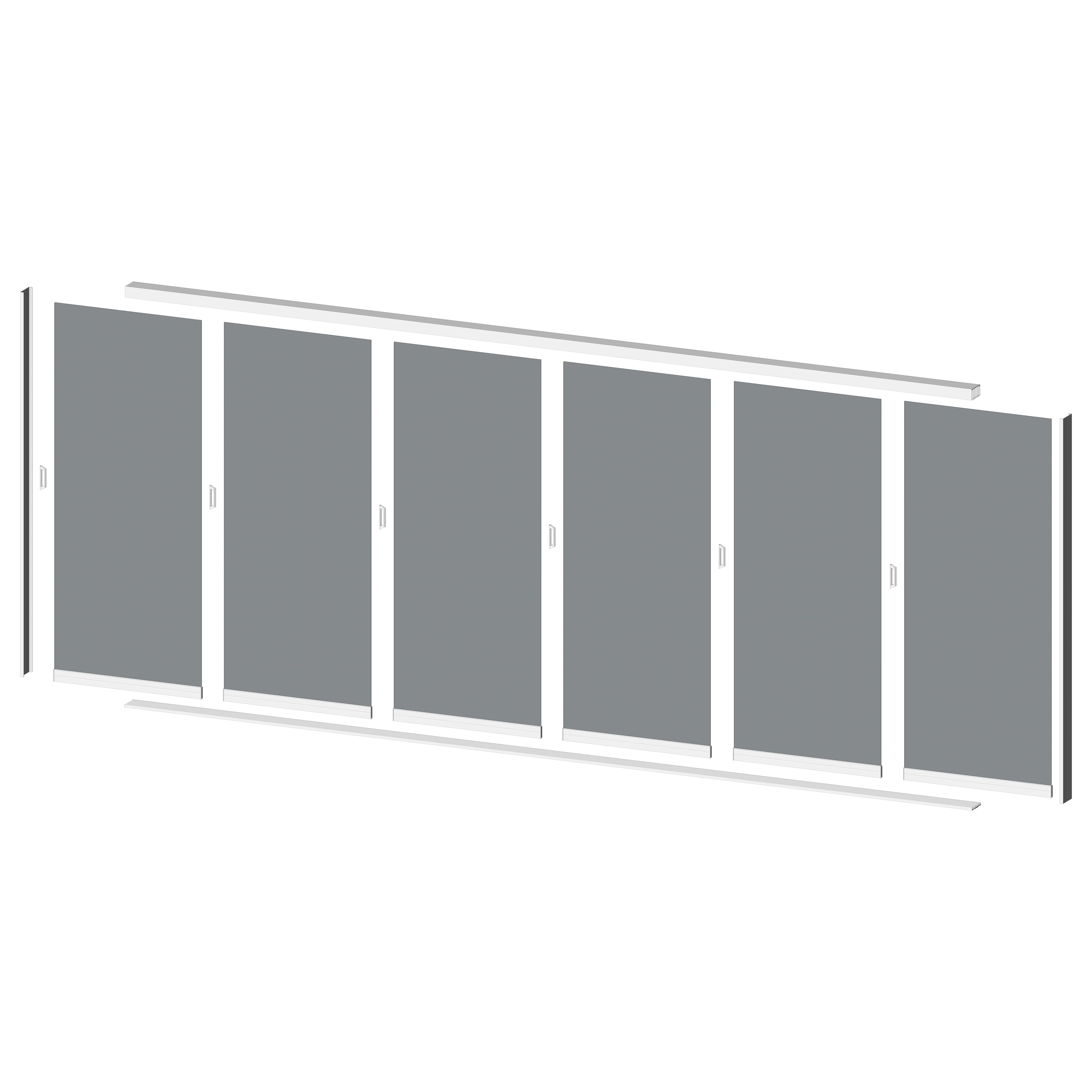 1x Glasschiebewand 5,9 x 2,45 Meter 6-türig Glas Grau Weiß