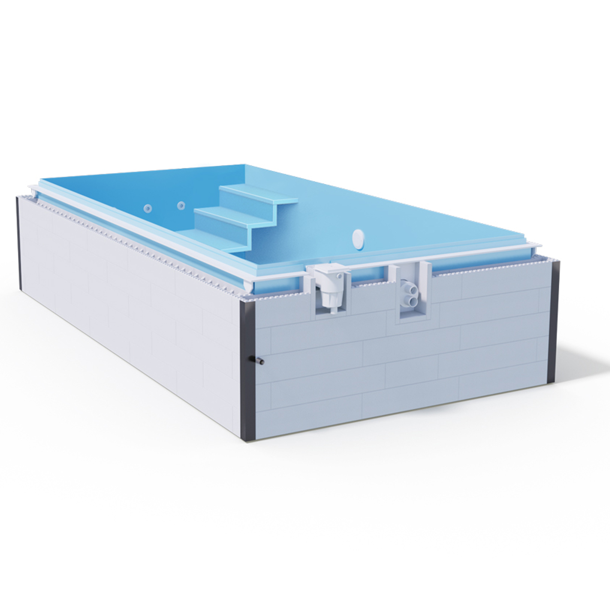 Standard Plus Schwimmbecken - Die Abmessungen des Pools sind fest definiert, die Ausstattung kann nach Kundenwunsch konfiguriert werden. Die Pools werden auf Bestellung gefertigt.
