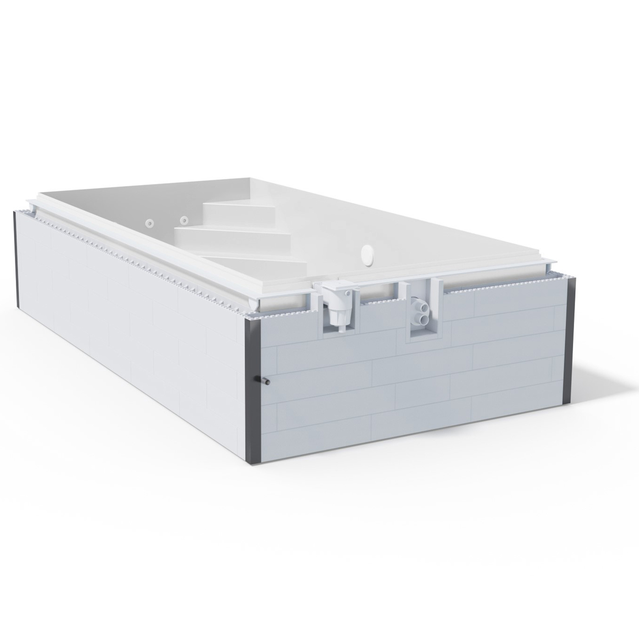 Standard Plus Schwimmbecken - Die Abmessungen des Pools sind fest definiert, die Ausstattung kann nach Kundenwunsch konfiguriert werden. Die Pools werden auf Bestellung gefertigt.