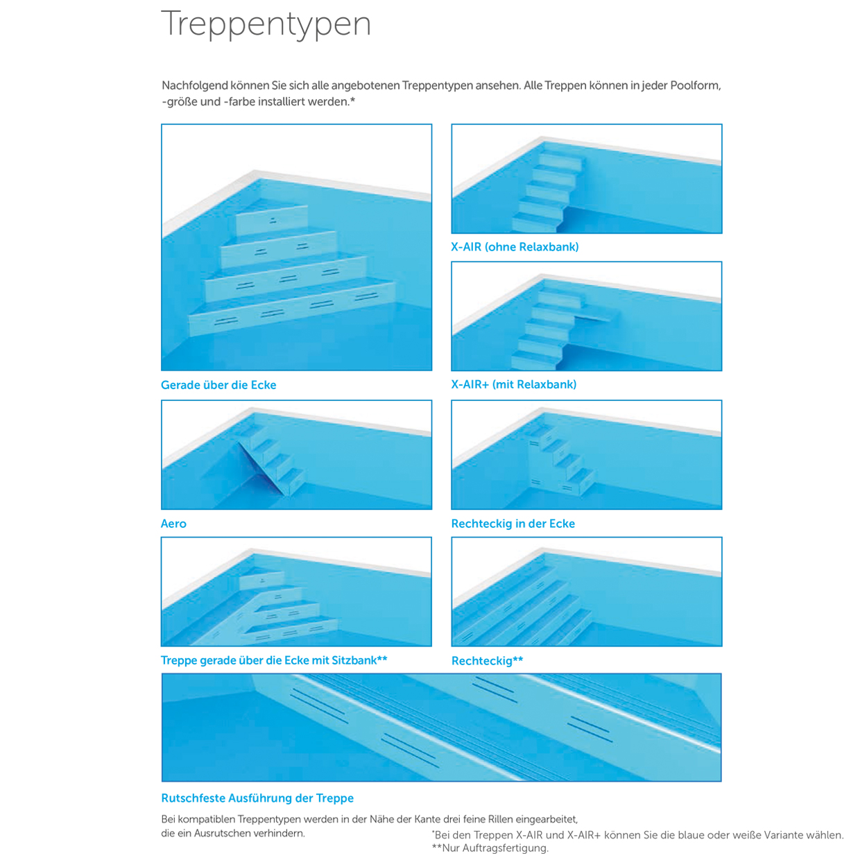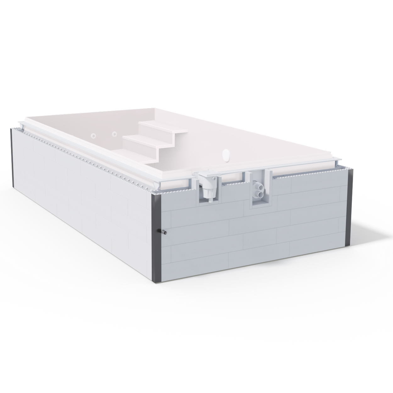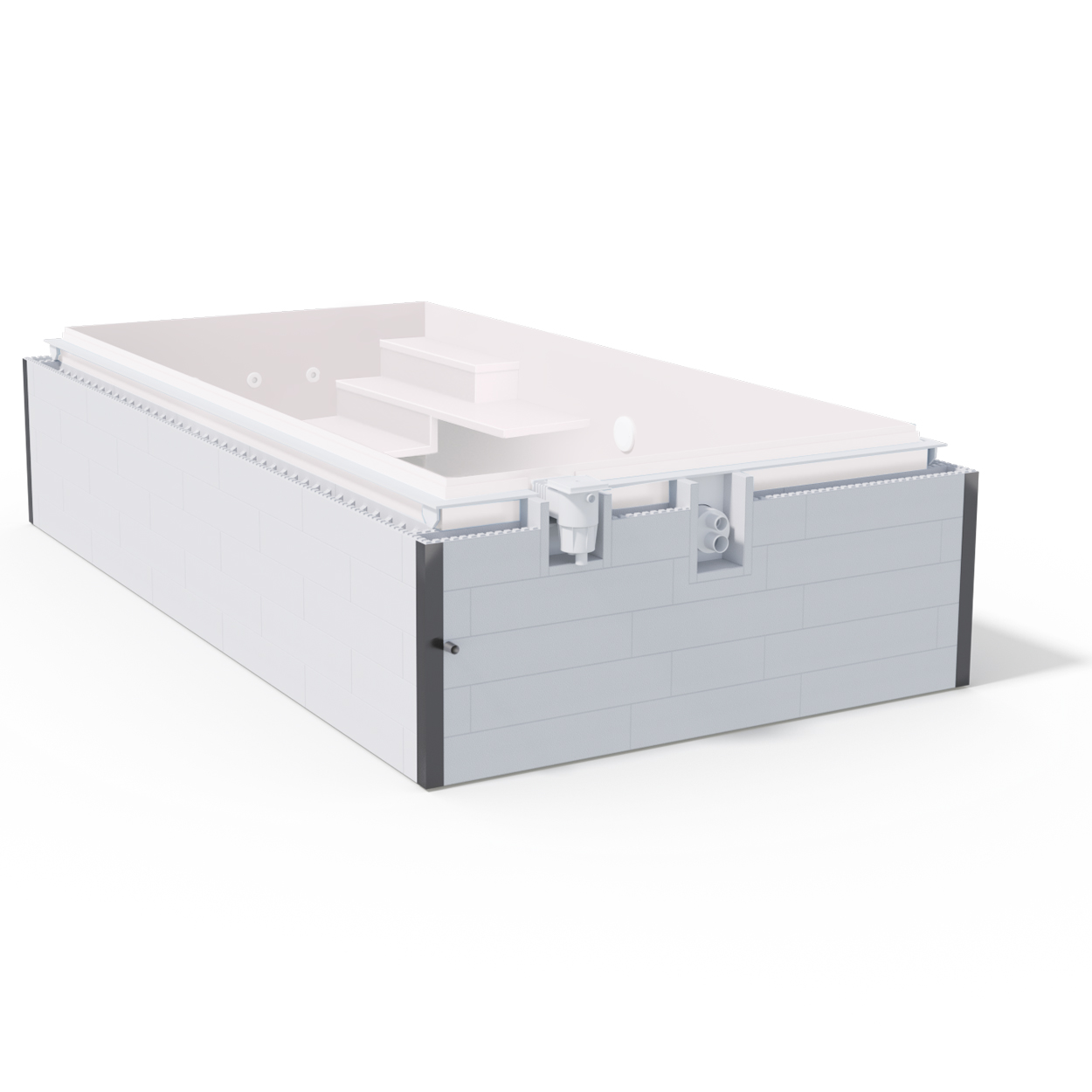 Standard Plus Schwimmbecken - Die Abmessungen des Pools sind fest definiert, die Ausstattung kann nach Kundenwunsch konfiguriert werden. Die Pools werden auf Bestellung gefertigt.