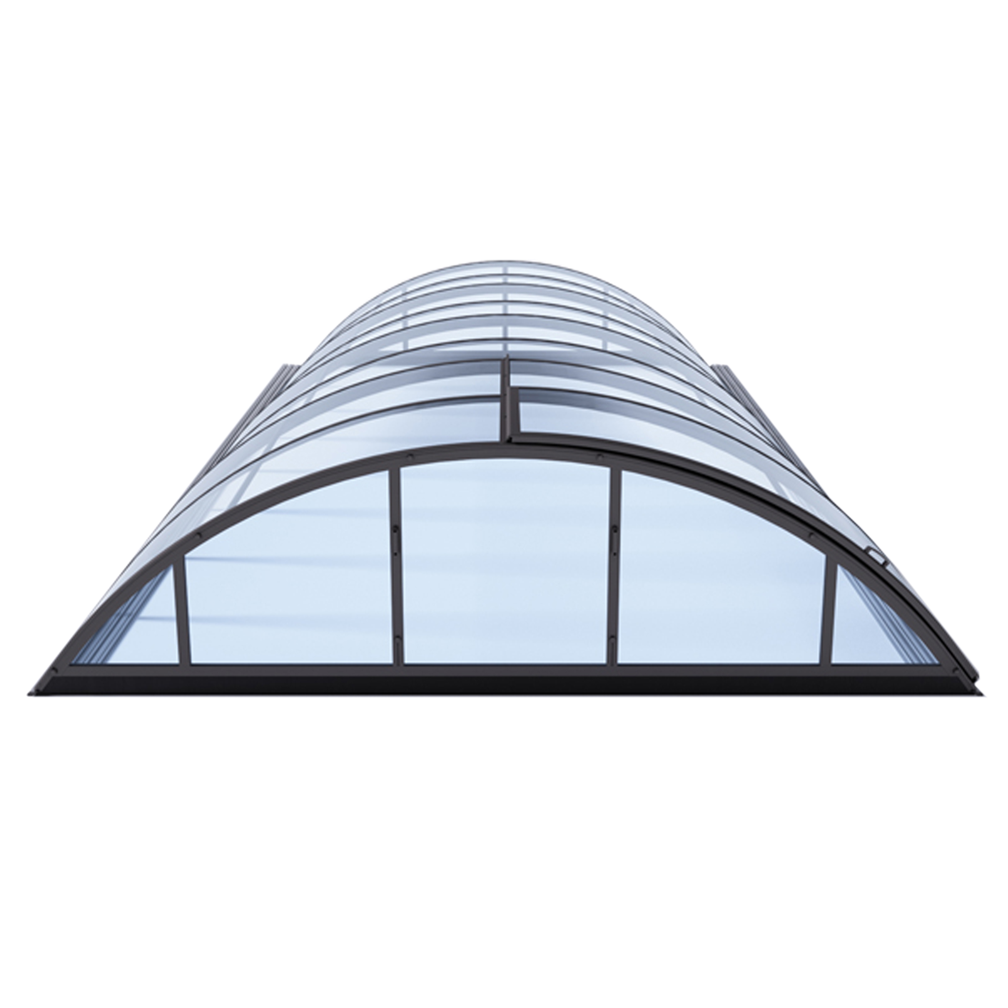 Wenn Sie gerne runde Formen und anmutige Kurven mögen, dann ist die mittelhohe Poolüberdachung Modell KLASIK für Sie die beste Lösung. Diese futuristische und minimalistische Überdachung ist dank ihrer eleganten Ausführung eine der beliebtesten Formen und passt in jeden Garten. Ein Klassiker, dem niemand überdrüssig wird.