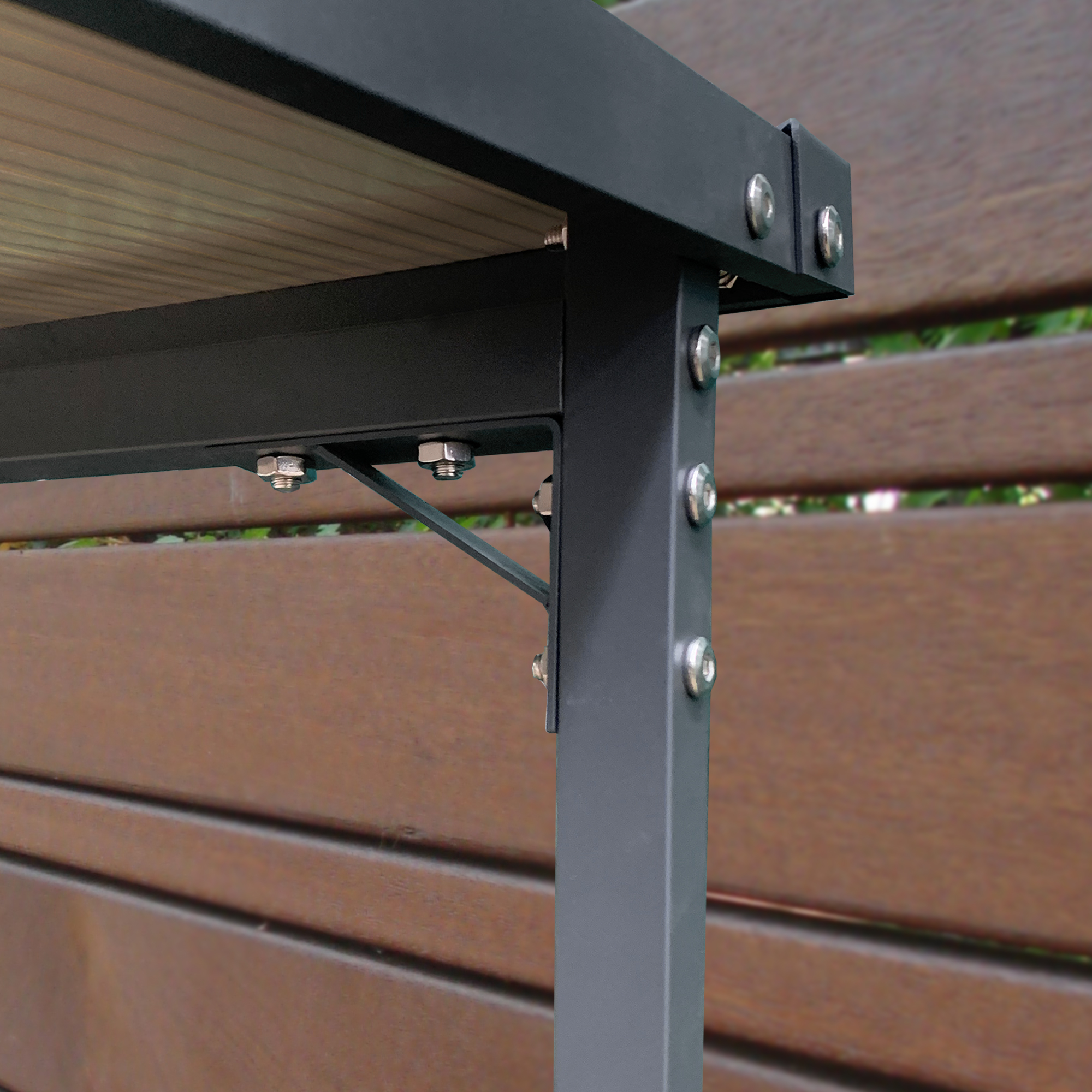 Das verwendete pulverbeschichtete Aluminium in Farbe Anthrazit ist witterungsbeständig und für Außeneinsatz hervorragend geeignet.