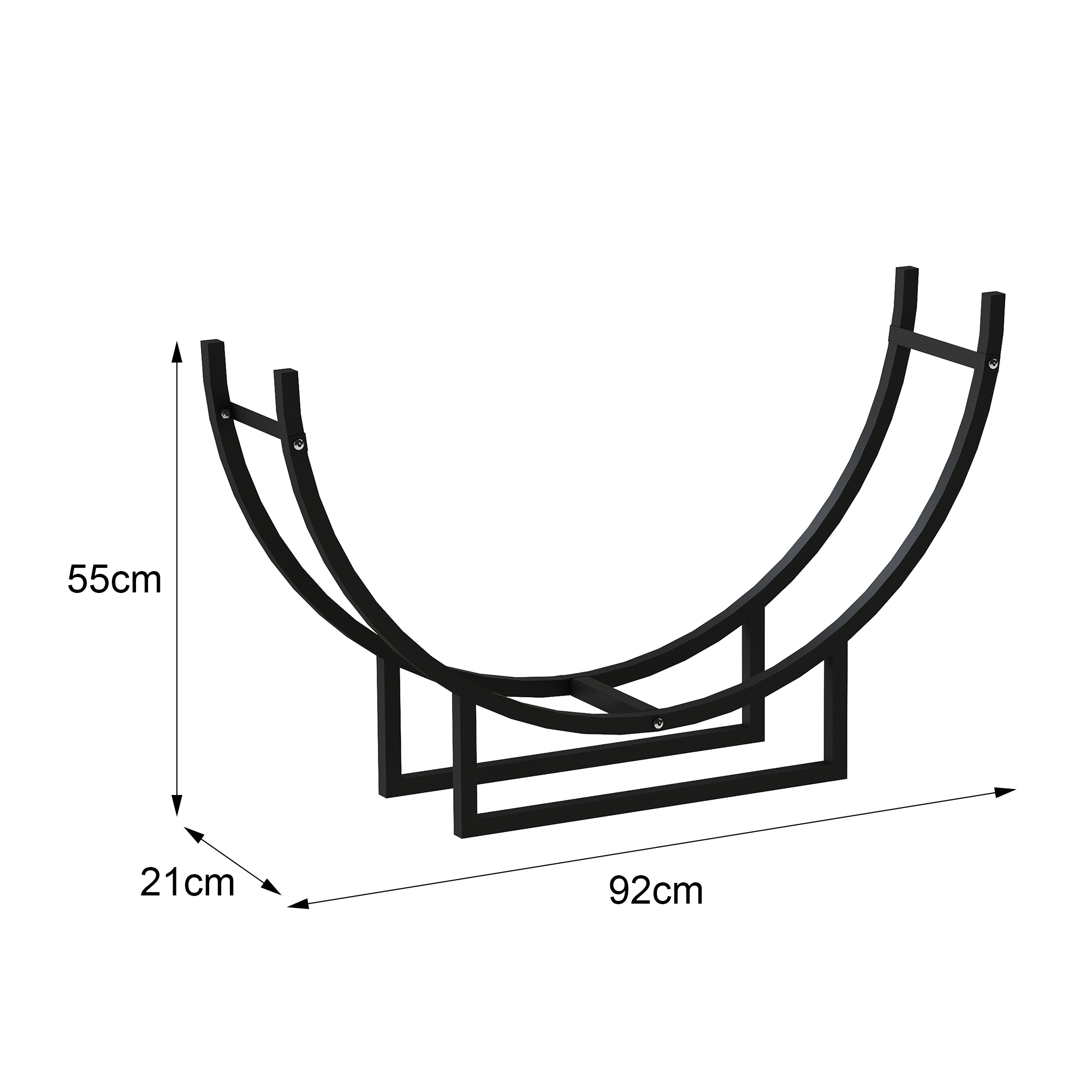 Der Feuerholzständer aus pulverbeschichteten Stahl in Farbe Schwarz ist witterungsbeständig und sowohl für Innen- oder Außeneinsatz hervorragend geeignet.