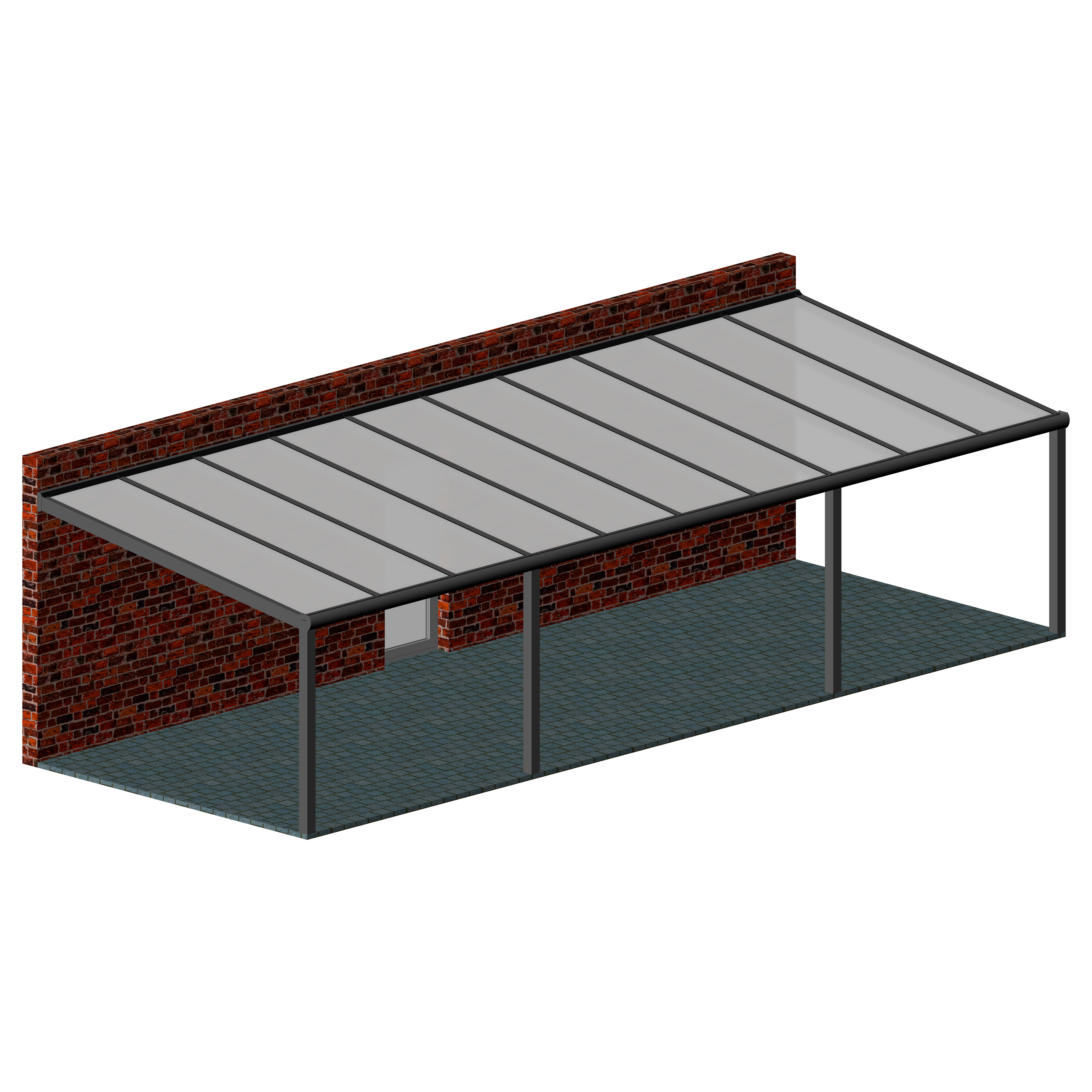 Hochwertige und kostengünstige Terrassenüberdachung aus pulverbeschichtetem Aluminium.