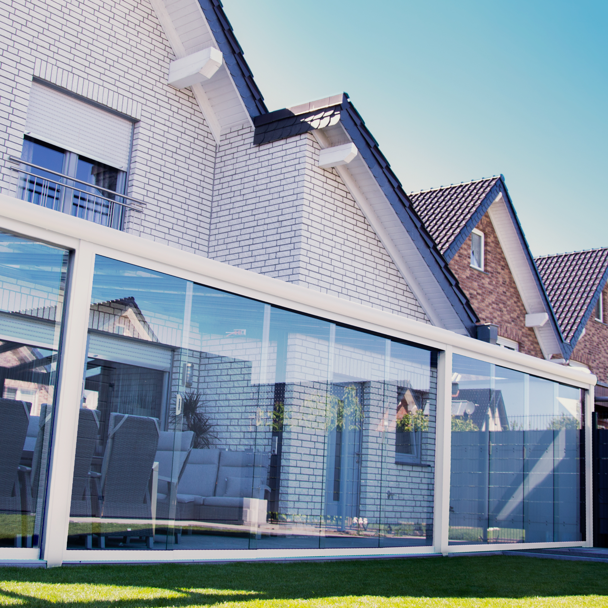 *Dreamgarden Überdachungen können mit Glasschiebewänden und LED-Einbauleuchten erweitert werden (Nicht im Lieferumfang)