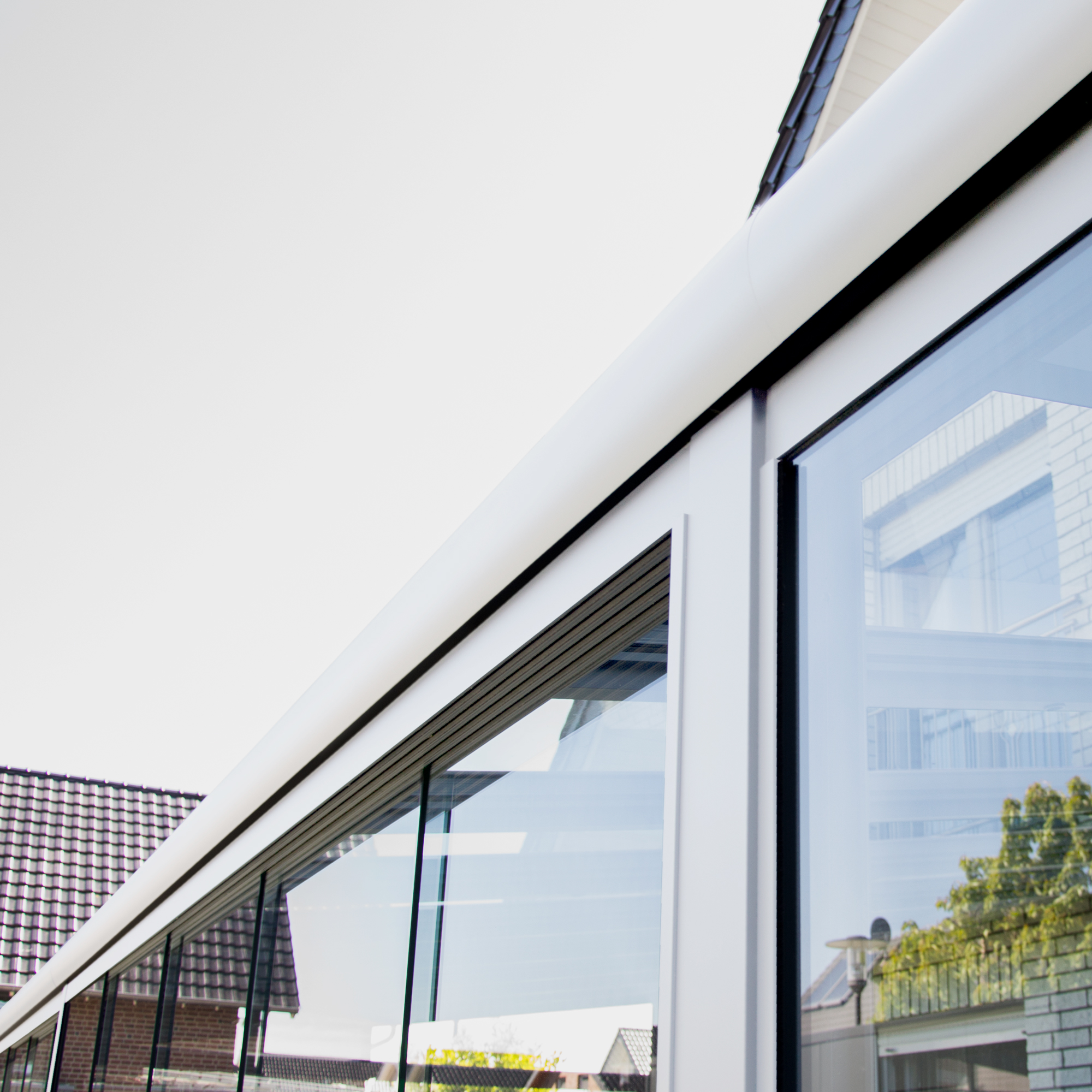 Die moderne Ausführung kombiniert mit der eleganten runden Rinne und Polycarbonatplatten ergibt sowohl an modernen, als auch an klassischen Objekten ein gutes Gesamtbild. Auch als Carport nutzbar.
