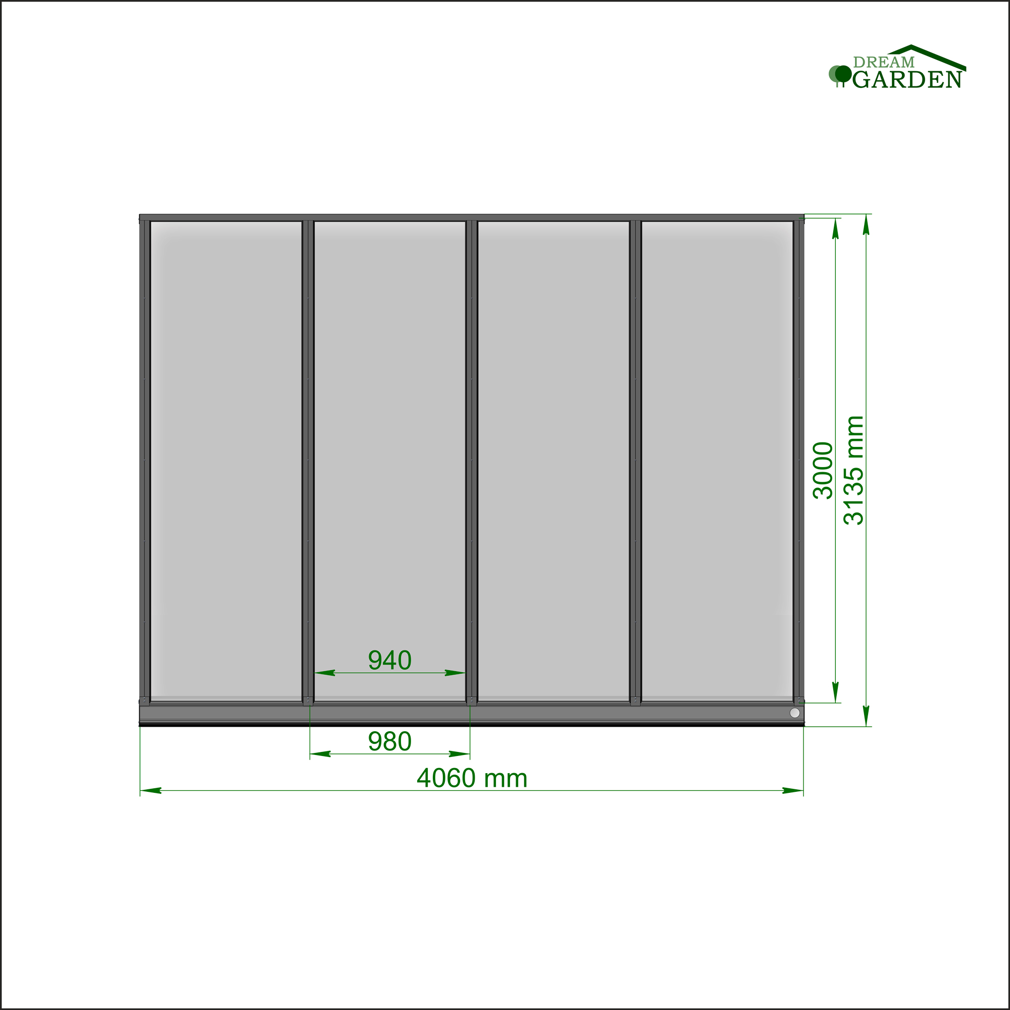 *Dreamgarden Überdachungen können mit Glasschiebewänden und LED-Einbauleuchten erweitert werden (Nicht im Lieferumfang)