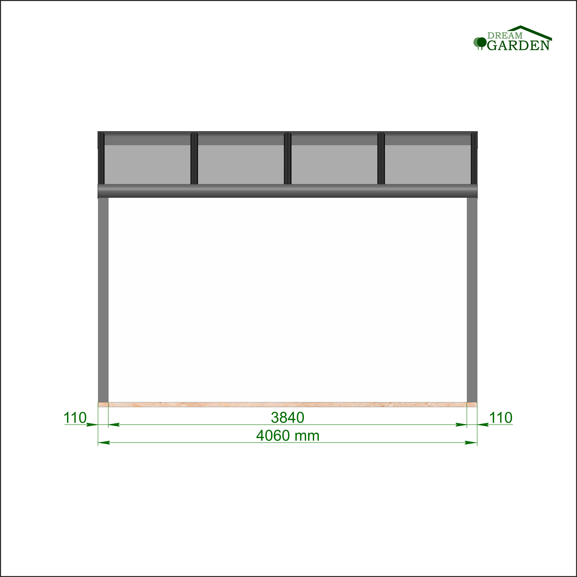 *Dreamgarden Überdachungen können mit Glasschiebewänden und LED-Einbauleuchten erweitert werden (Nicht im Lieferumfang)