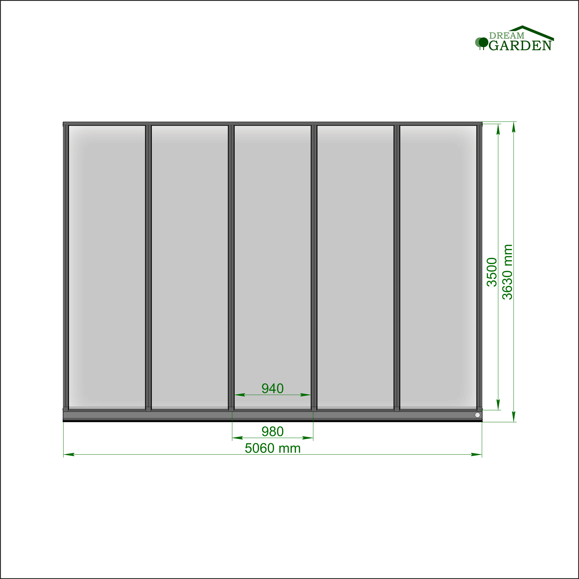 *DreamgardenÜberdachungen können mit Glasschiebewänden und LED-Einbauleuchten erweitert werden (Nicht im Lieferumfang)