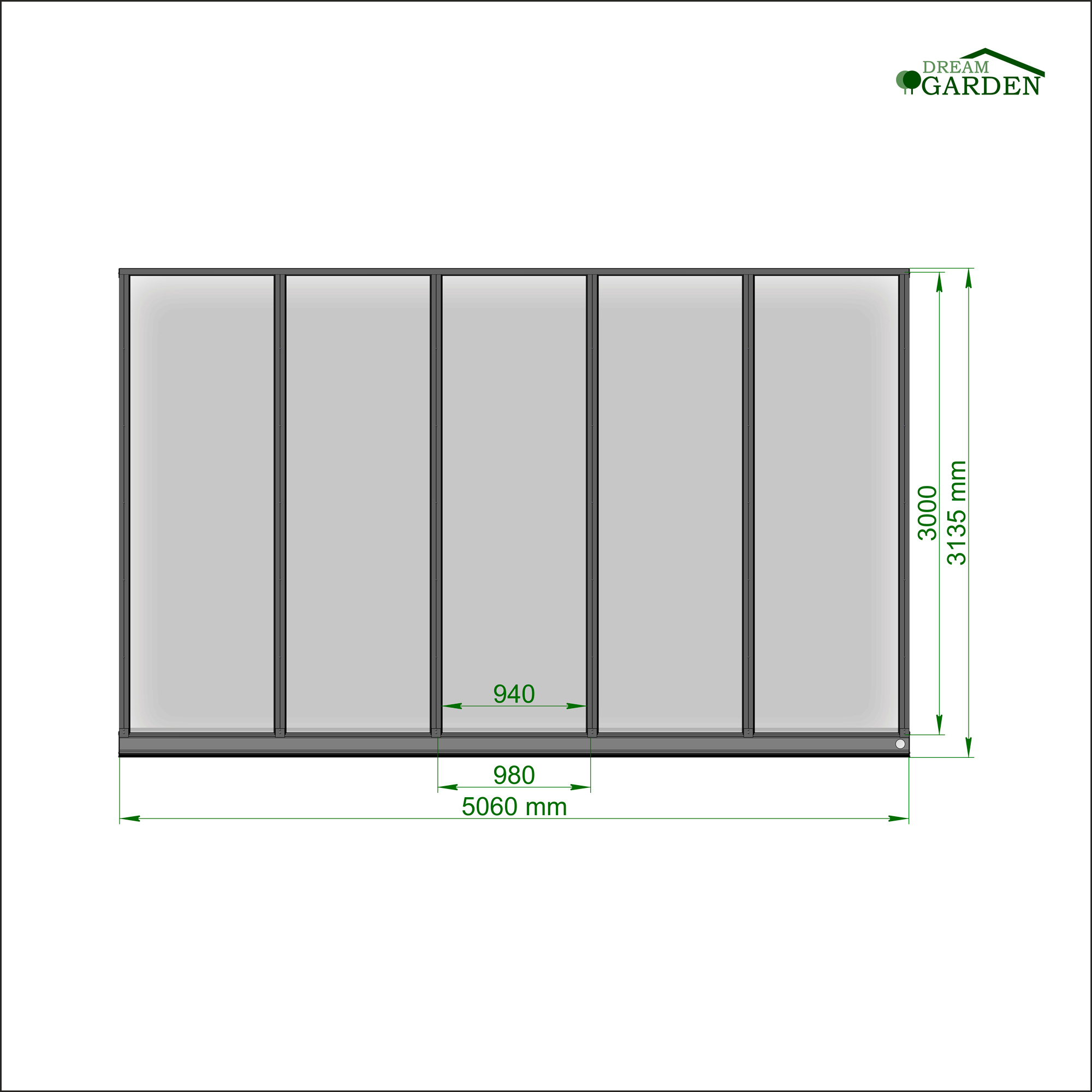 Dreamgarden Terrassenüberdachung 5,06 x 3 Meter Anthrazit Polycarbonat Opal