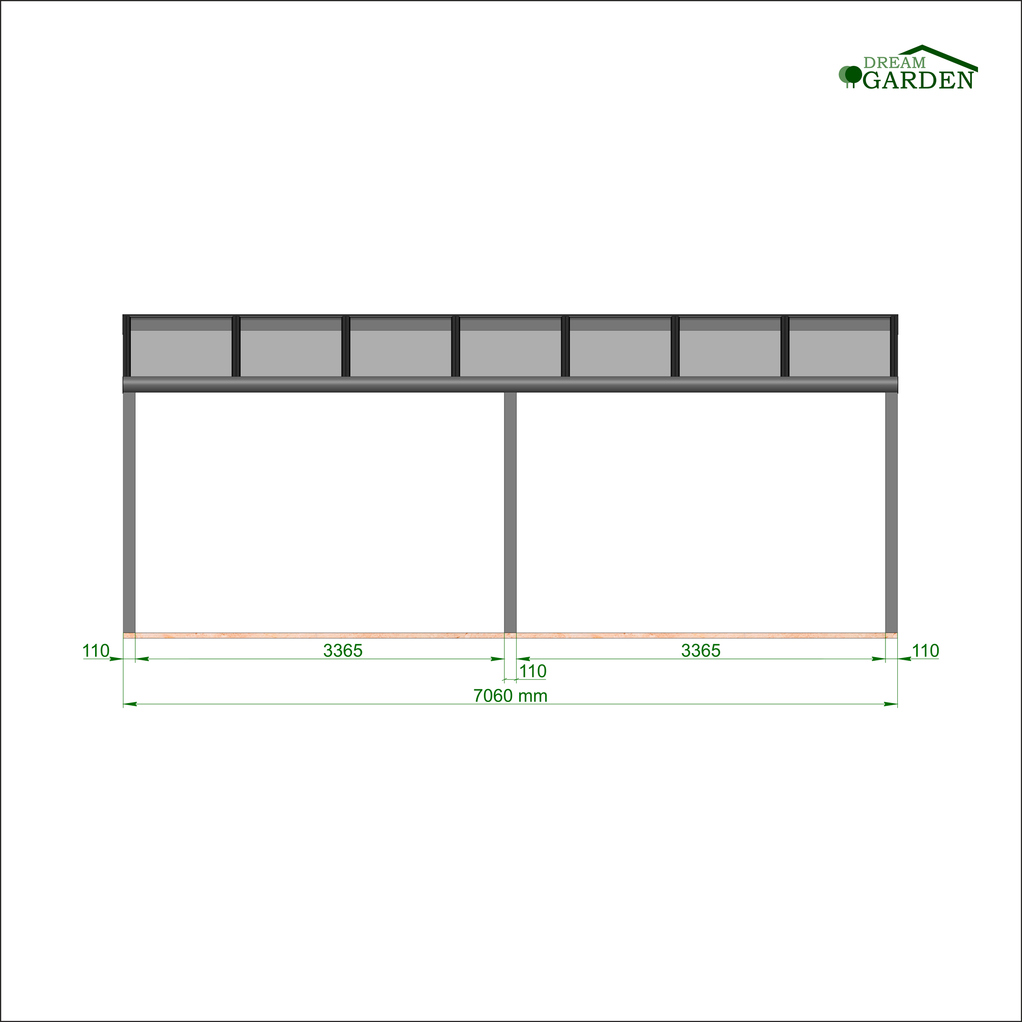 *Dreamgarden Überdachungen können mit Glasschiebewänden und LED-Einbauleuchten erweitert werden (Nicht im Lieferumfang)