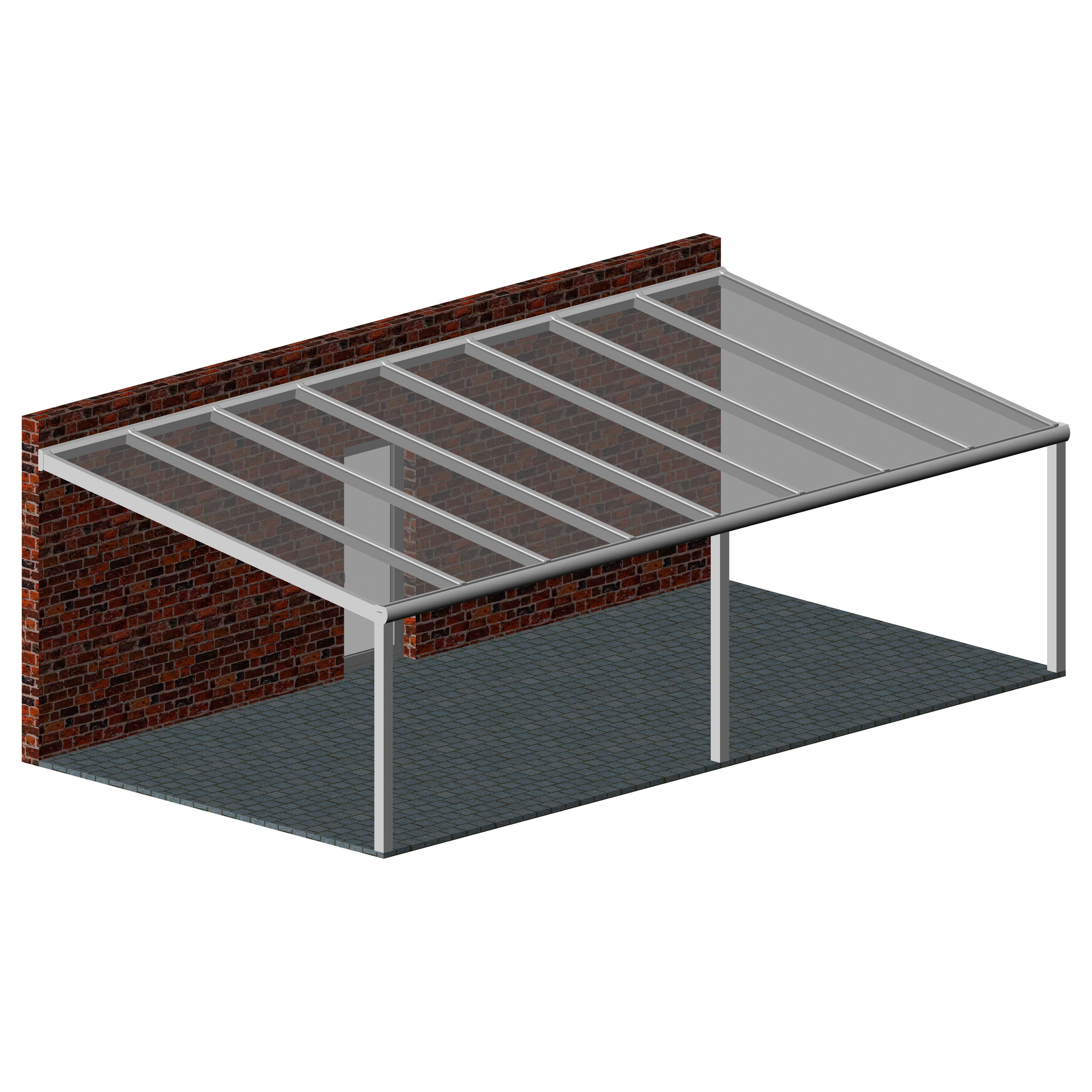 Die moderne Ausführung kombiniert mit der eleganten runden Rinne und Polycarbonatplatten ergibt sowohl an modernen, als auch an klassischen Objekten ein gutes Gesamtbild. Auch als Carport nutzbar.