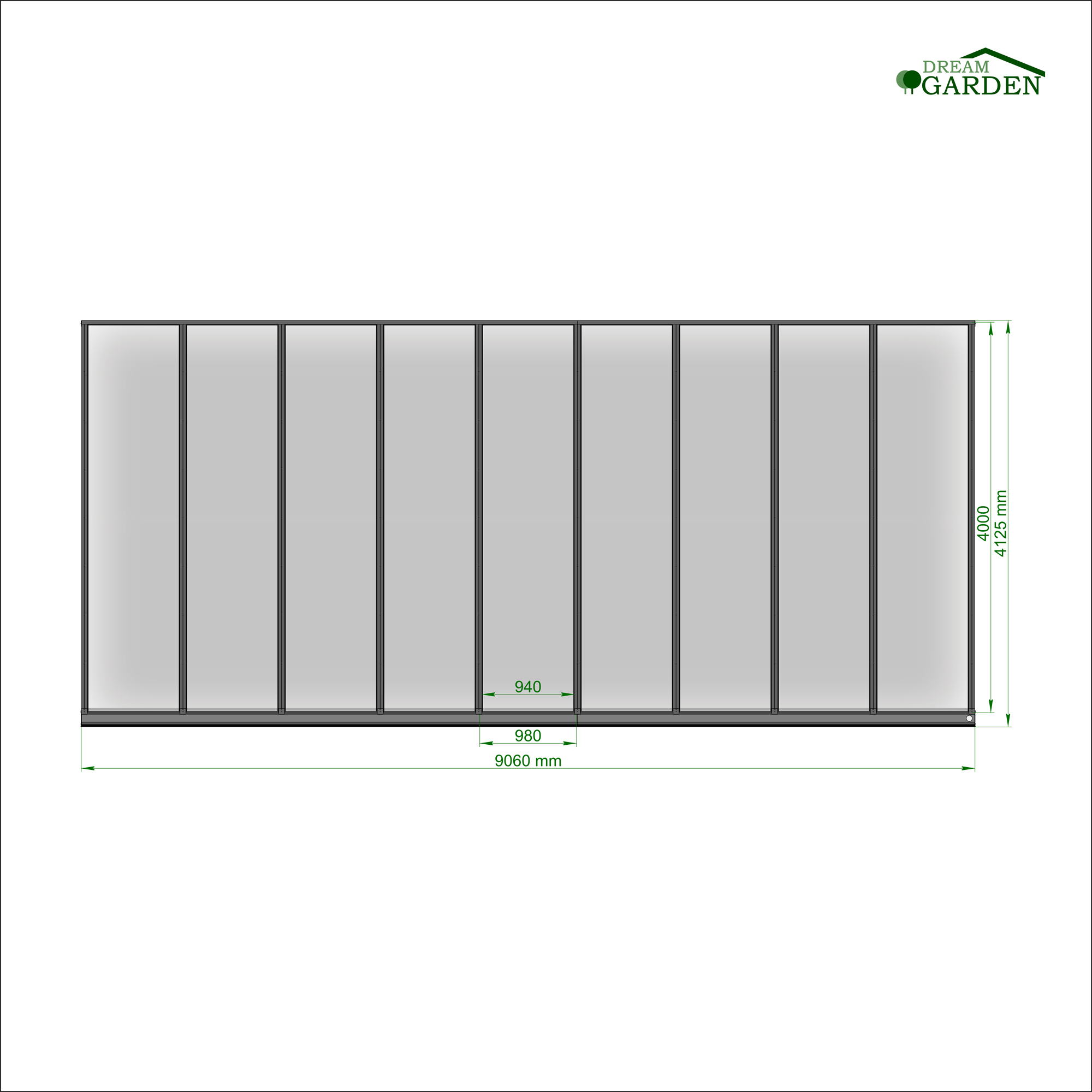 Dreamgarden Terrassenüberdachung 9,06 x 4 Meter Weiß Polycarbonat Bronze