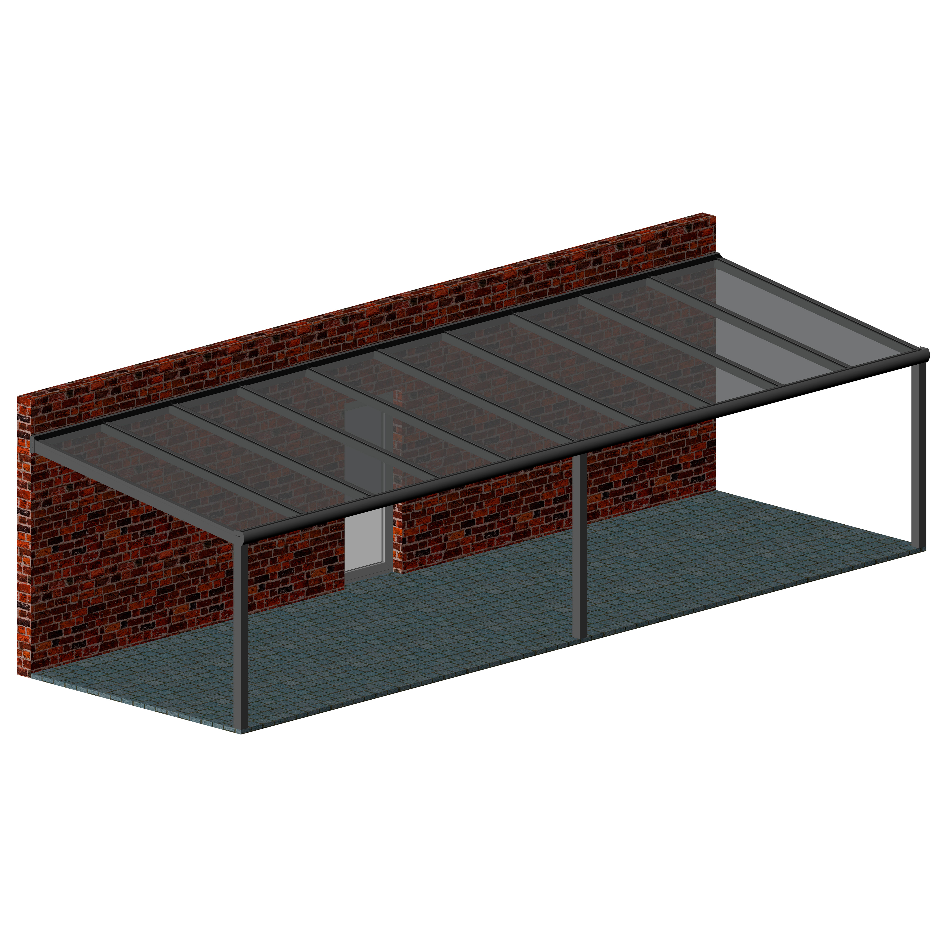 Hochwertige und kostengünstige Terrassenüberdachung aus pulverbeschichtetem Aluminium.