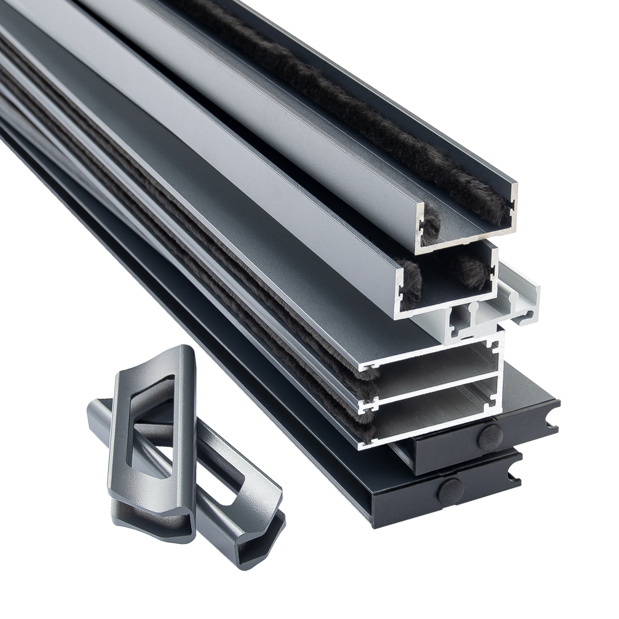 Bausatz beinhaltet: Schienensystem inkl. Türgriffe (ohne Glasscheiben)