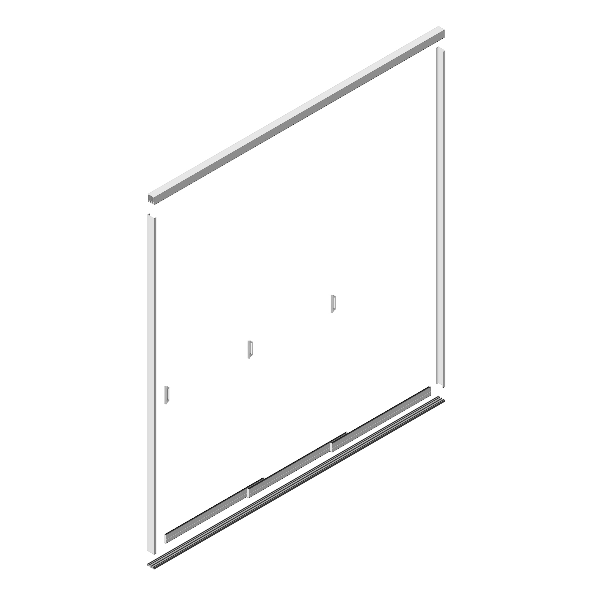 Bausatz beinhaltet: Abschlusskeil, Schienensystem, Seitenprofile, Glasschiebetüre, Türgriffe, Schraubensatz
