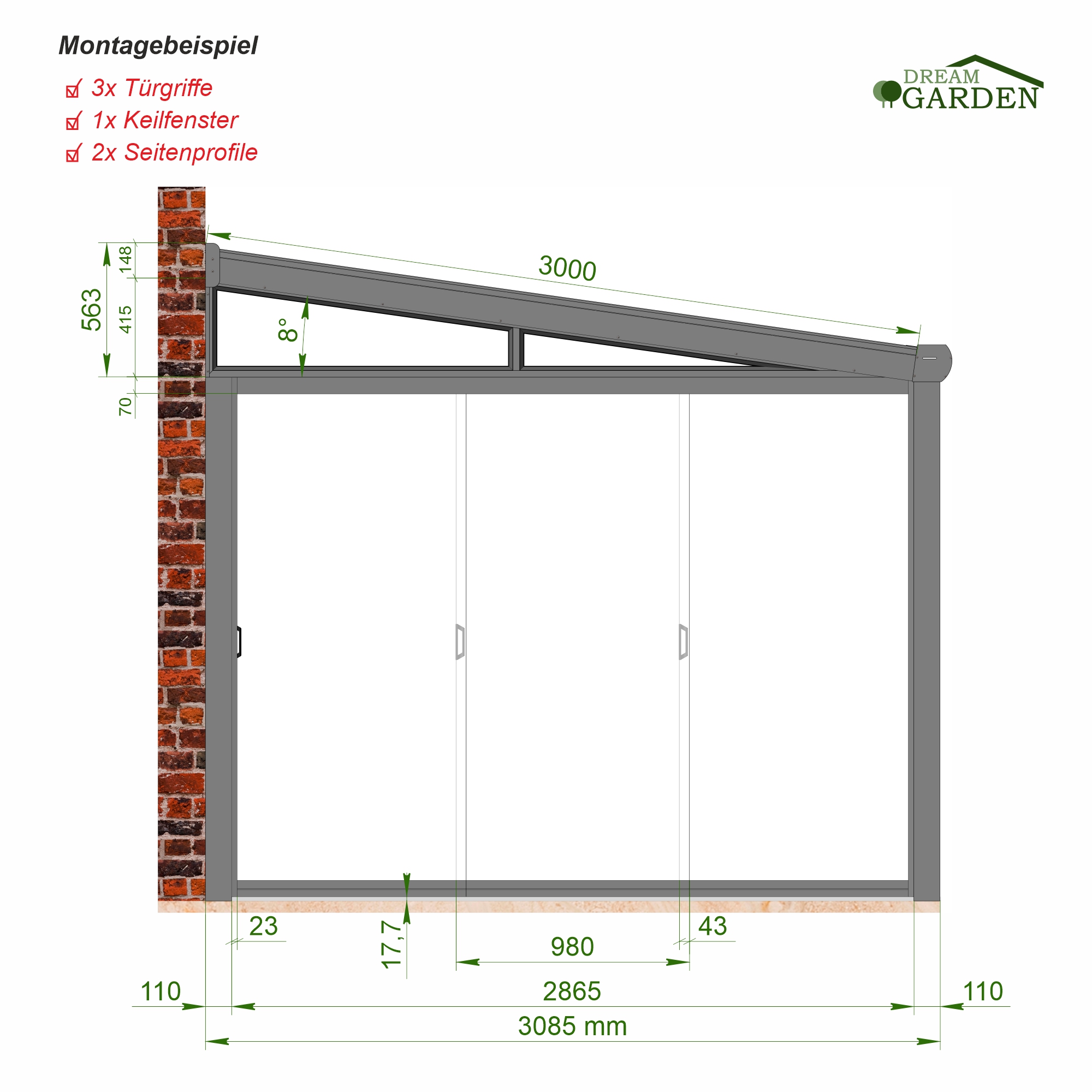 *Dreamgarden Schiebewände können mit Unterbau-Tragprofil, Zugluftstopper und Türmitnehmer erweitert werden (Nicht im Lieferumfang)